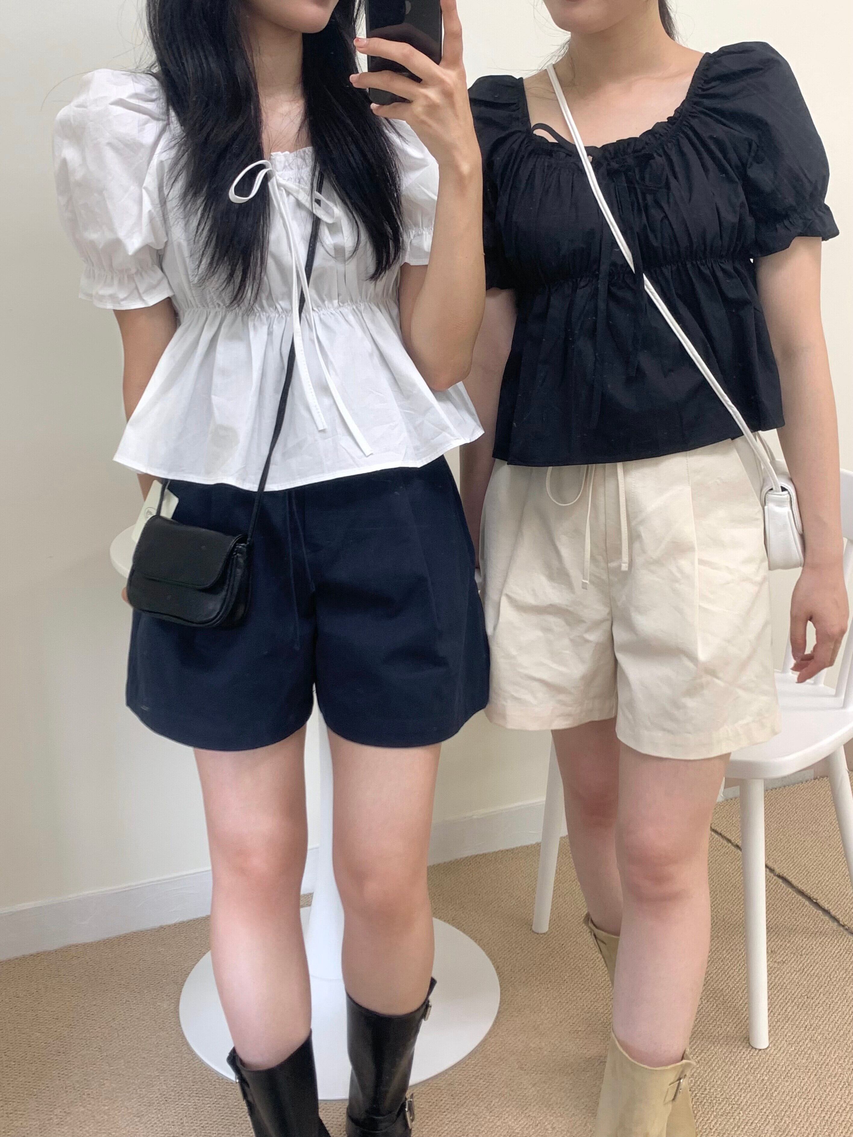 BOTTOMS : Pintuck ribbon short pants (cream)