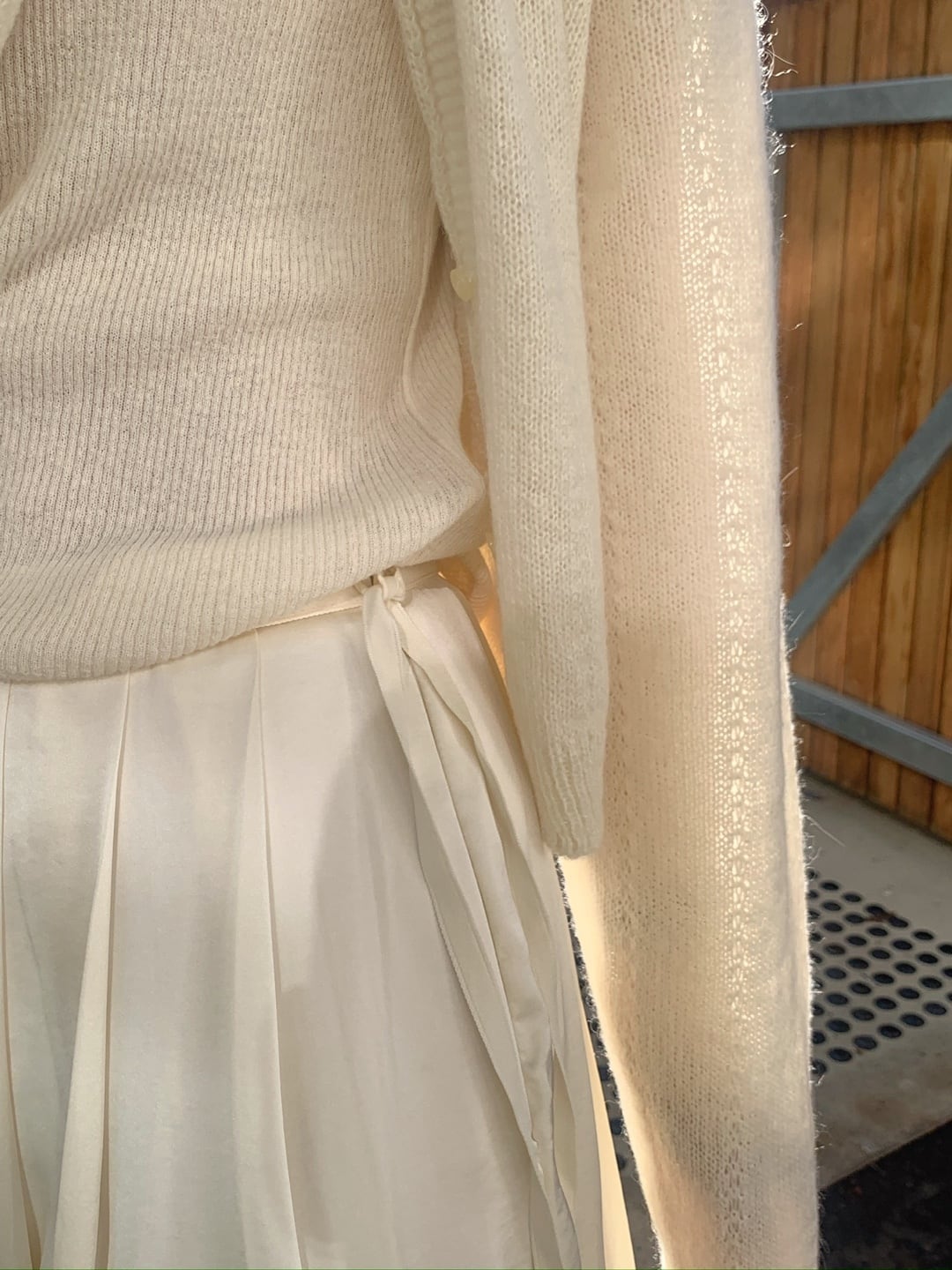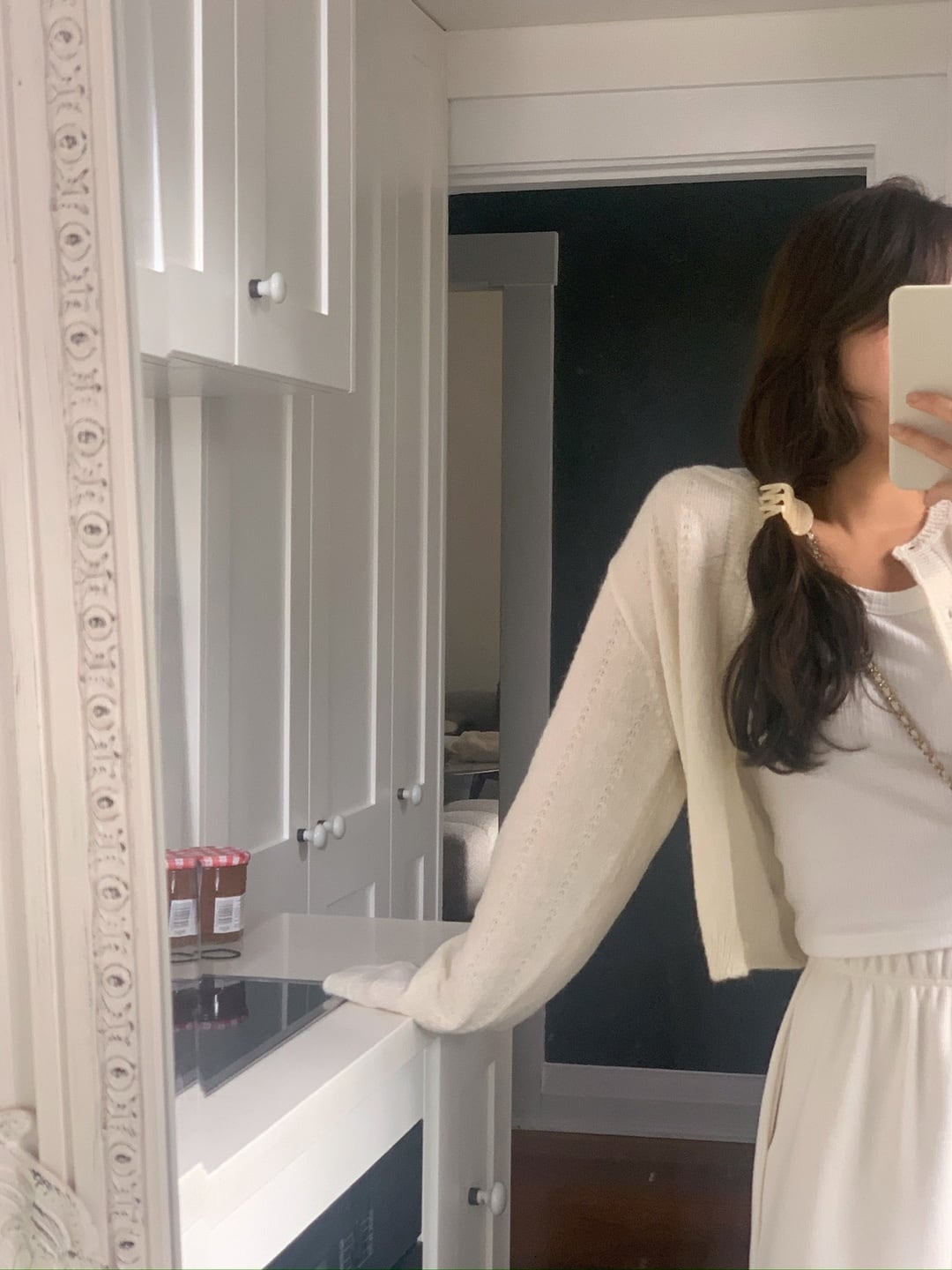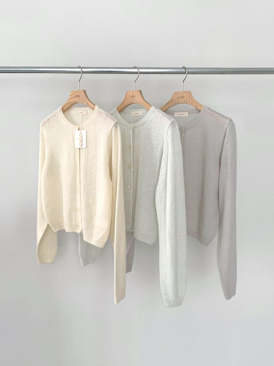 ふわふわ柔らくて軽いタッチ感のアルパカカーディガン。ウールとアルパカがブレンドされ、季節の変わり目に着用していただくのに良い厚み感で糸を直接染めて可愛らしいように水に焼けたカラー感が魅力的な製品です。