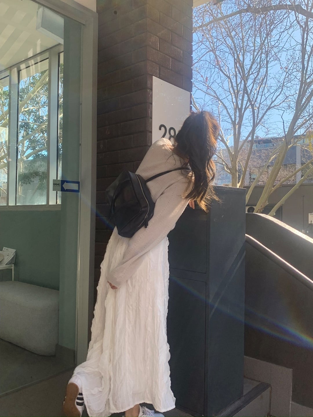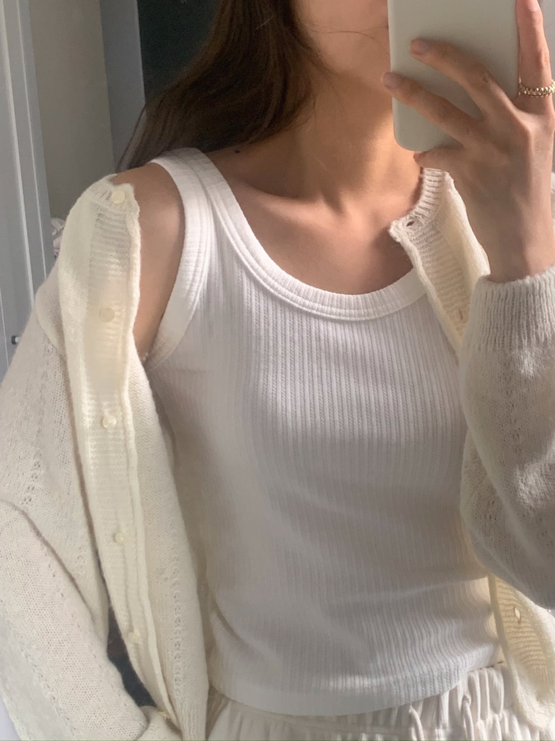 適度に余裕感のある女性らしいシルエットに前腕ラインの浮き彫りがなく、縦の2本のアイレットパターンをかすかに見えるような作りがポイント。穏やかなワッフル状のパターンと仕上げを乾かすように編んでほのかにポイントになってくれていて、軽いタッチで肌に触れる感触も良く着心地のよい質の高いアイテムになっています。