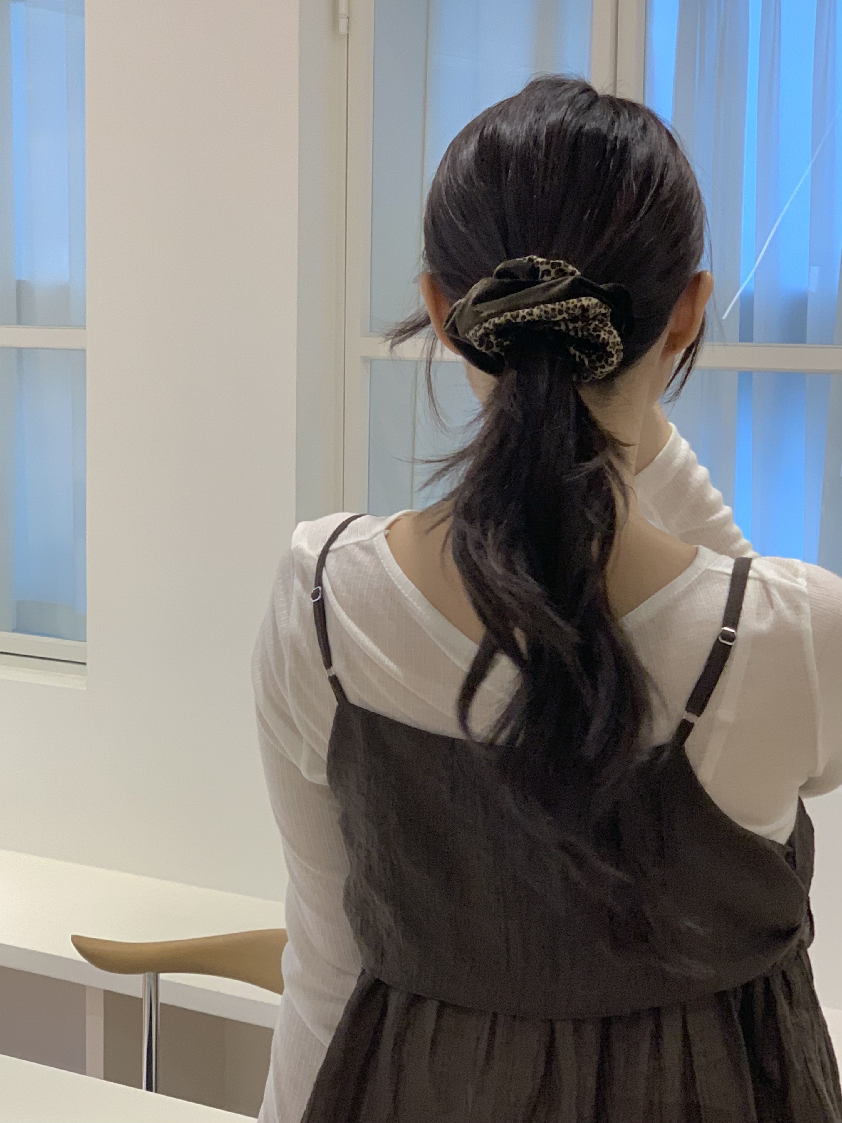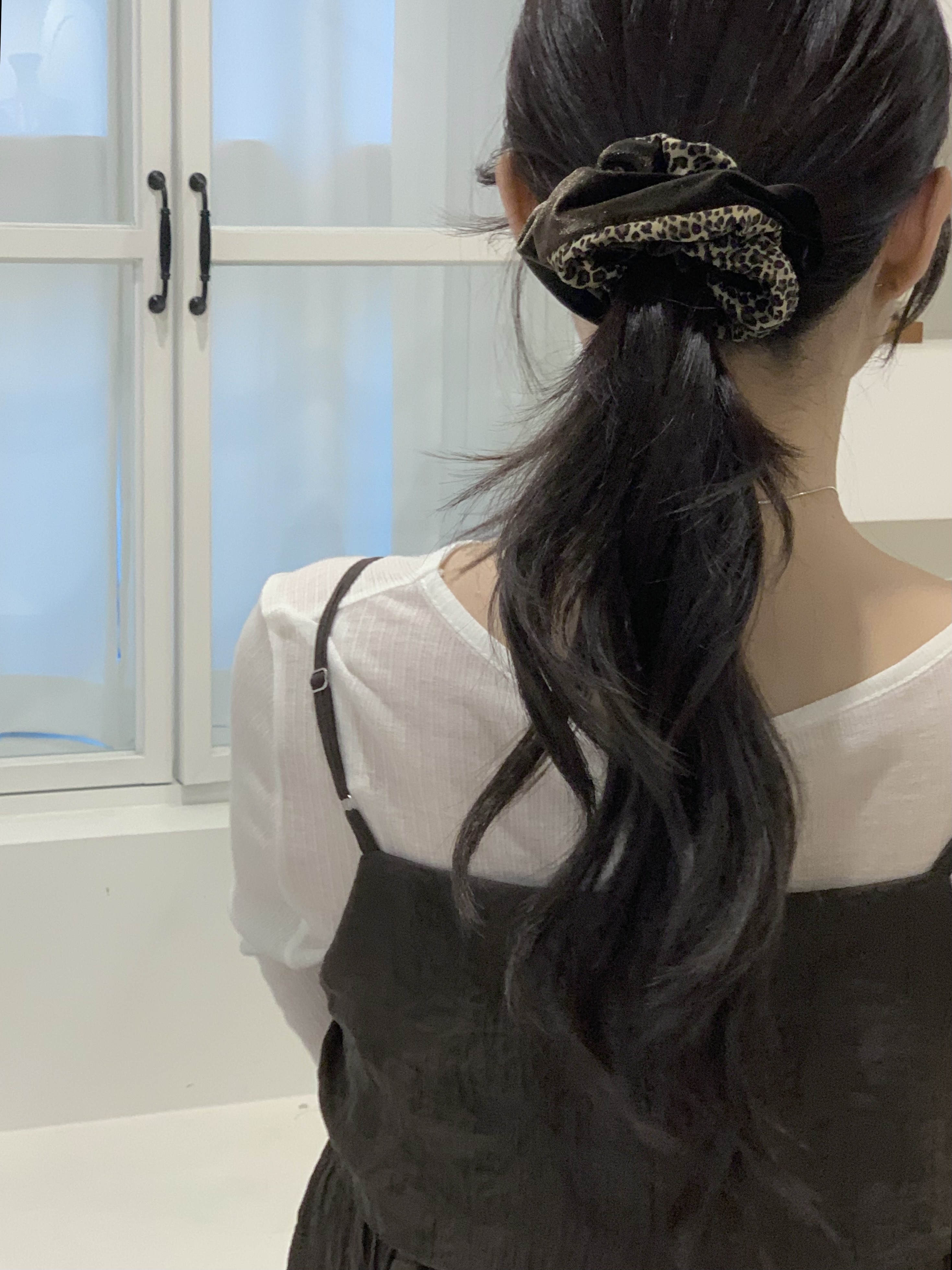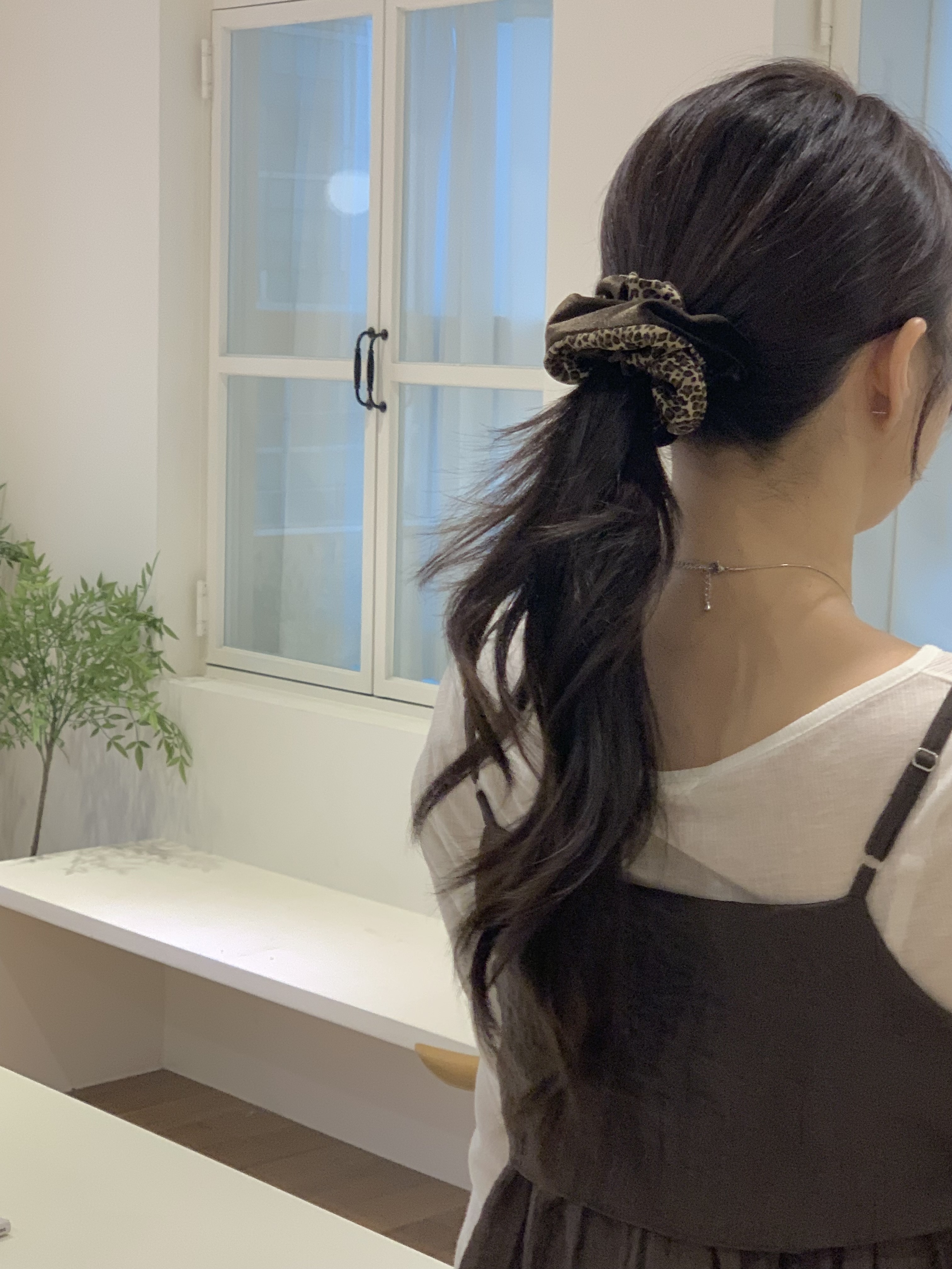 ふんわりとボリューム感のある秋冬にぴったりなレオパードシュシュ。
