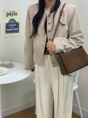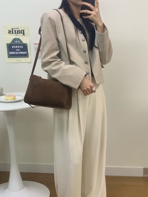上質な牛革とスエード素材の存在感のあるショルダーバッグ。
