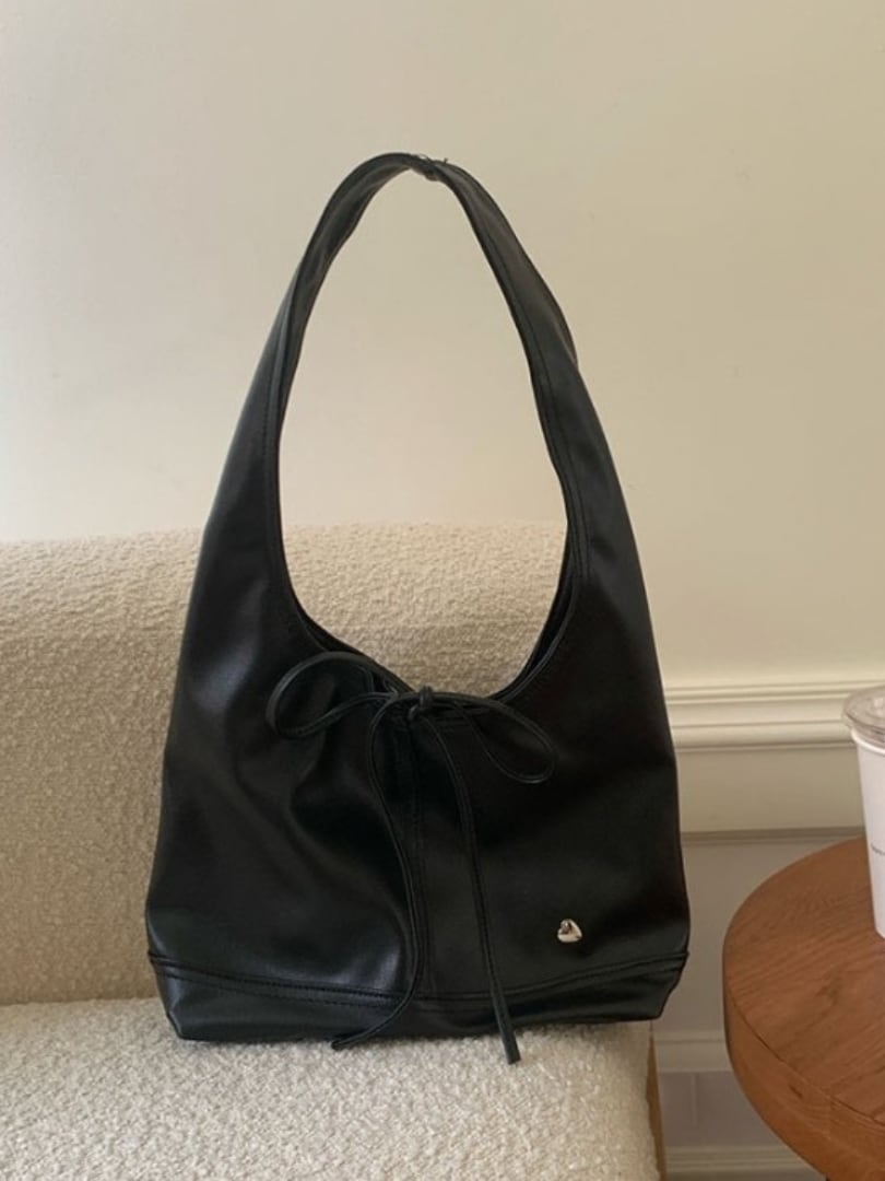 ハートチャーム、リボンを結ぶデザインが女性らしくコーディネートのアクセントに。
