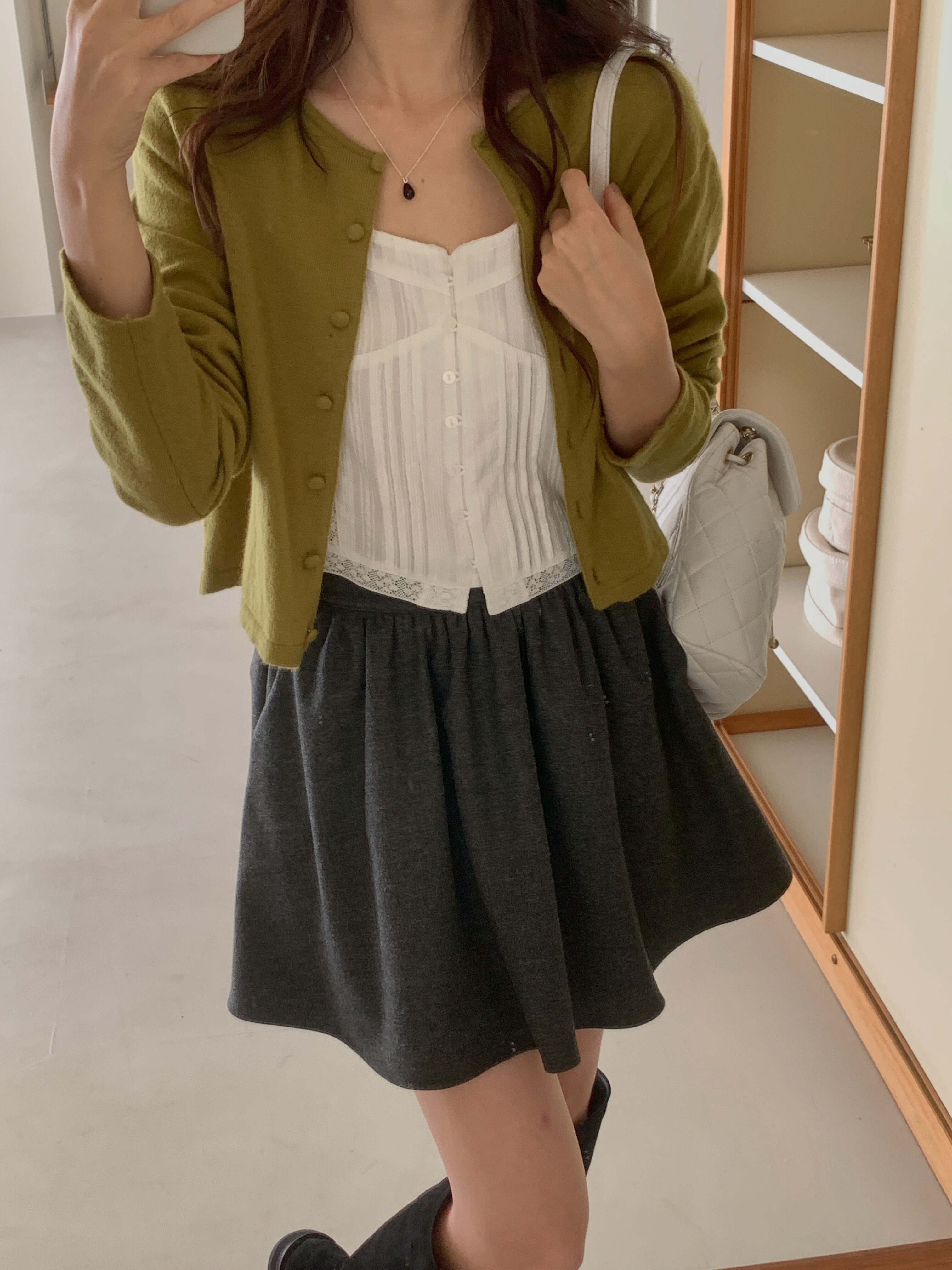 シンプルながらも上品な印象で、インナーとのレイヤードも楽しめる万能アイテムです。