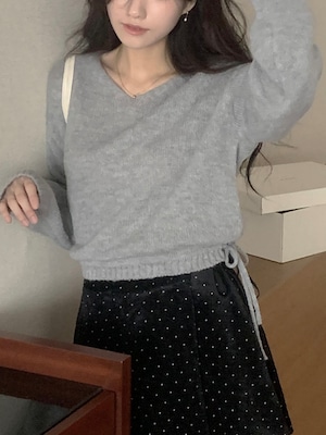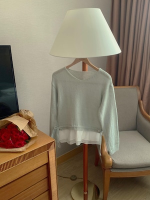 裾からのぞくフリルデザインと、サイドリボンが愛らしい印象を与えるフリル付きニット。
