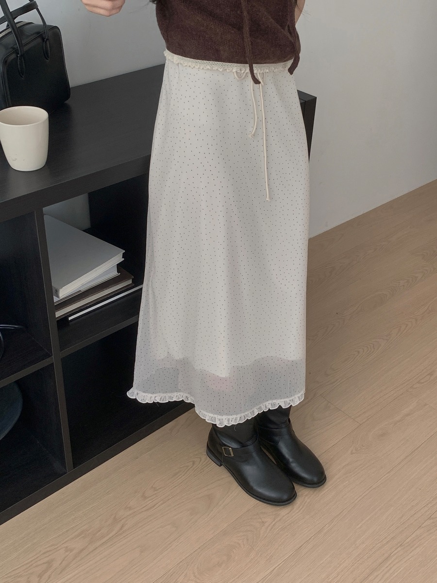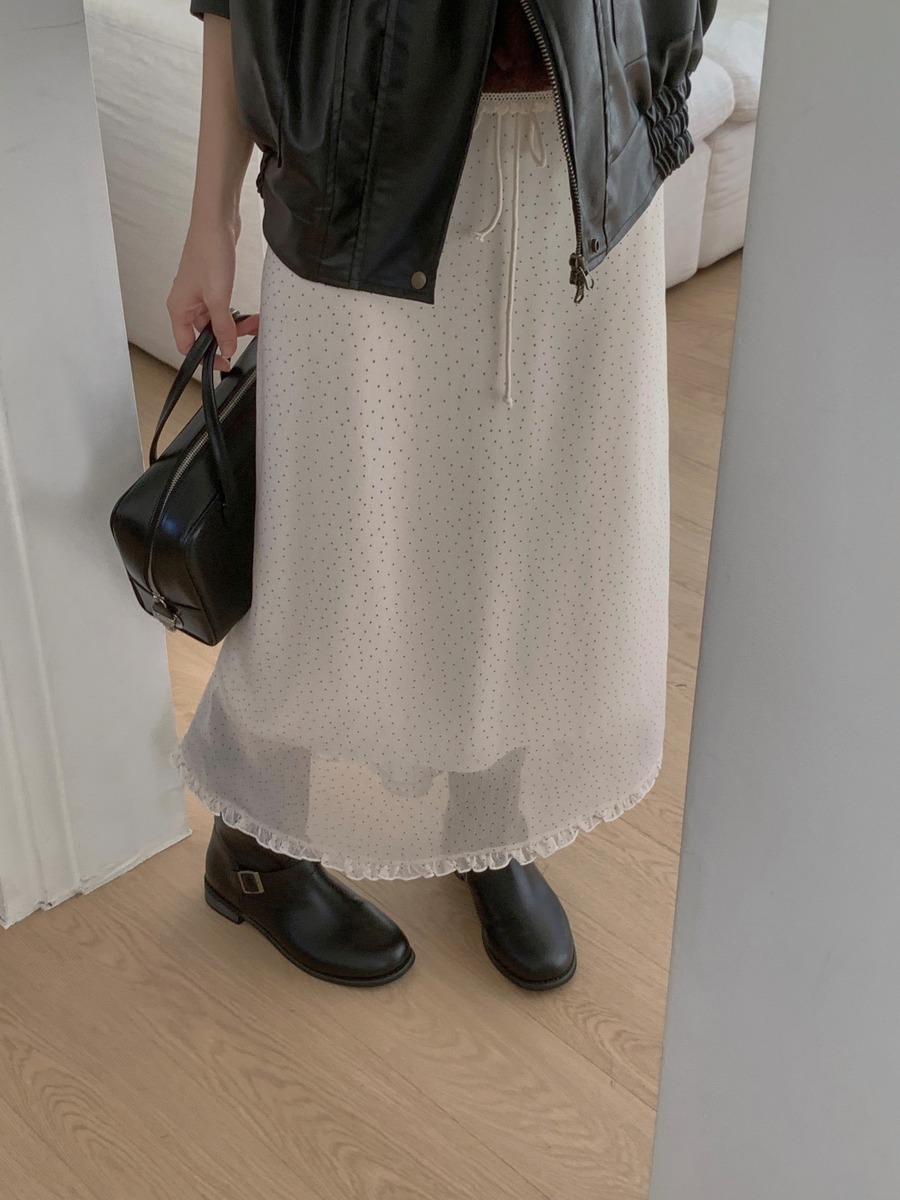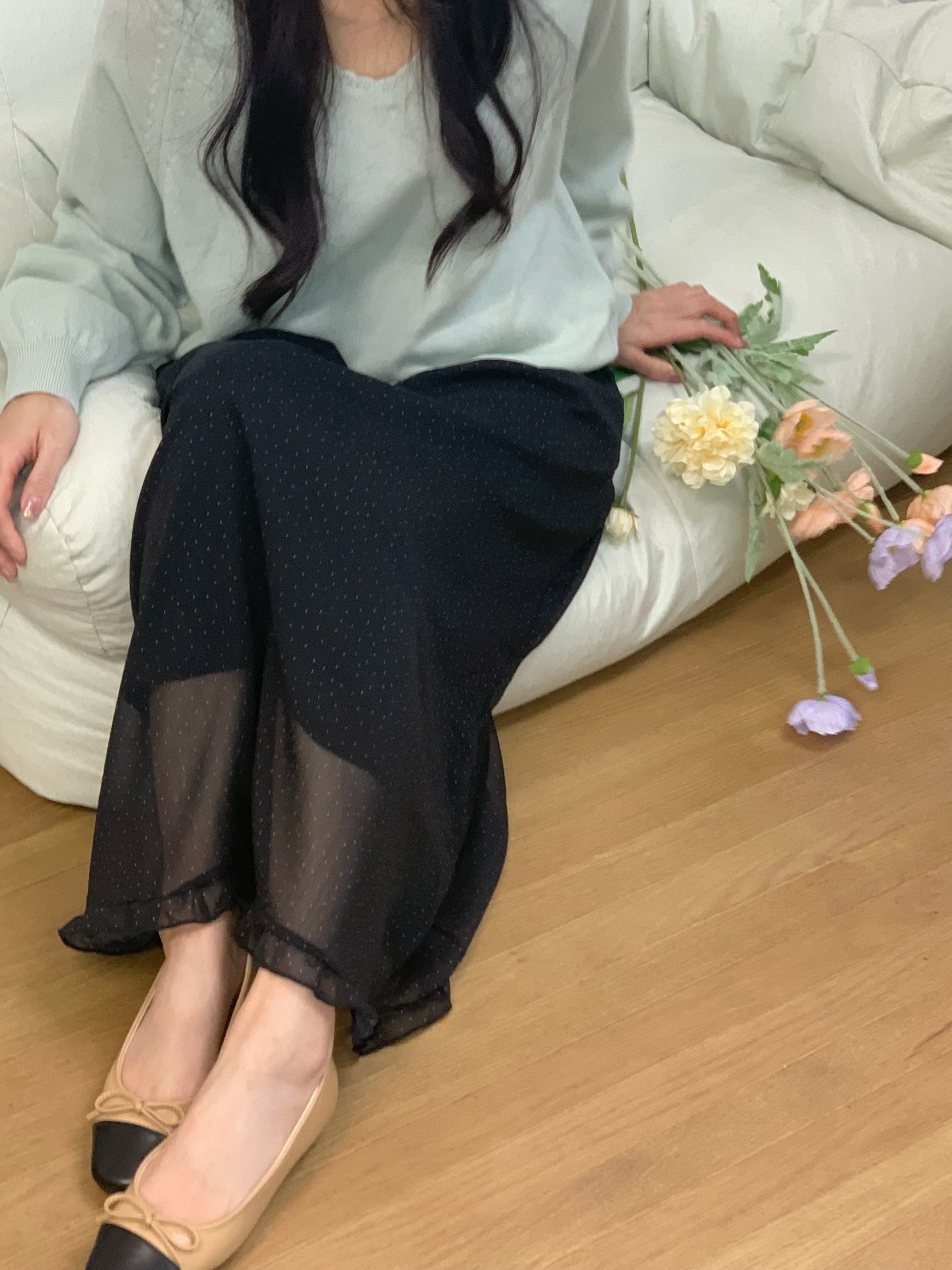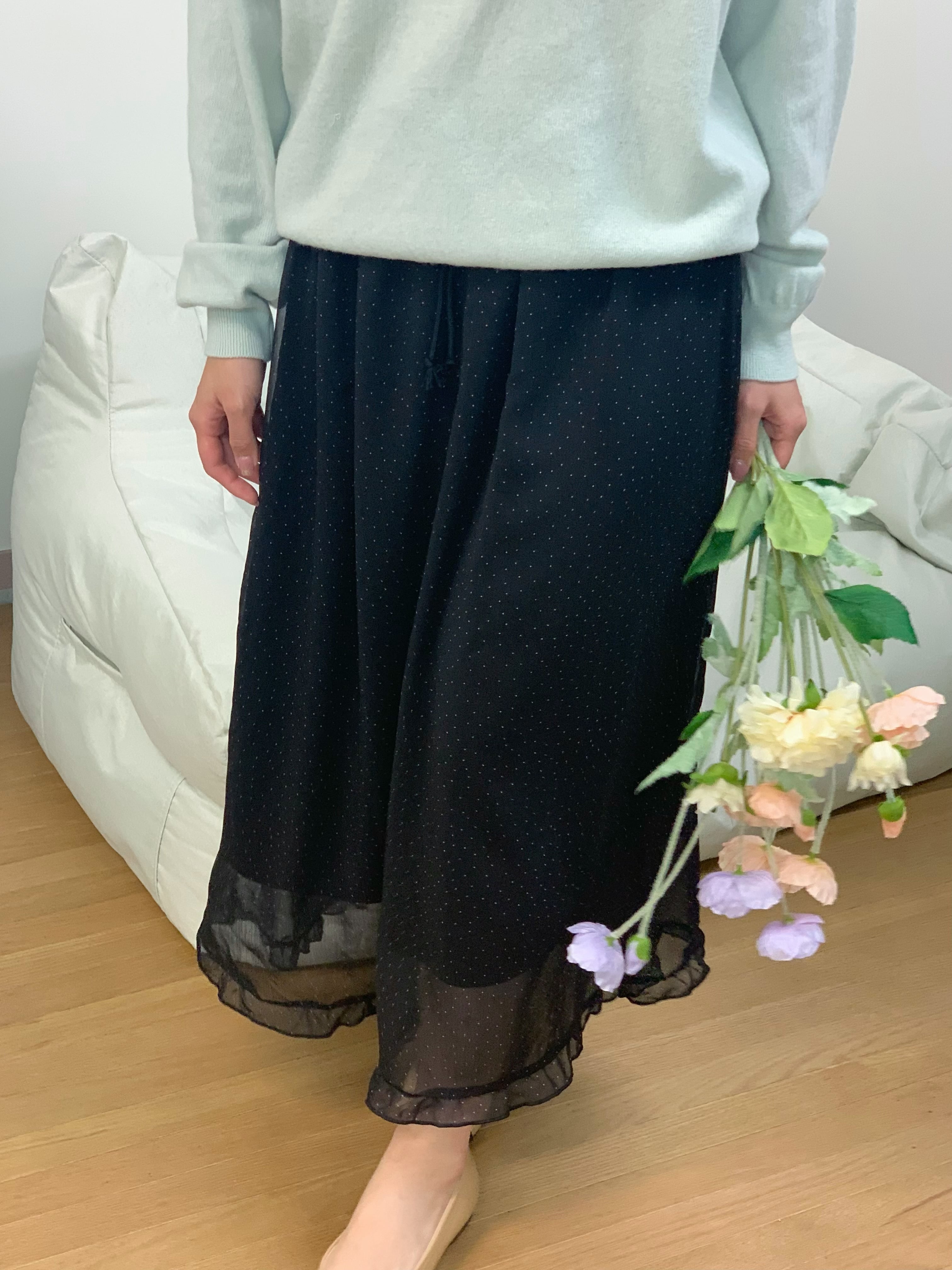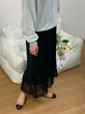 軽やかなシフォン素材に細かいドットを散りばめた、女性らしいロングスカート。