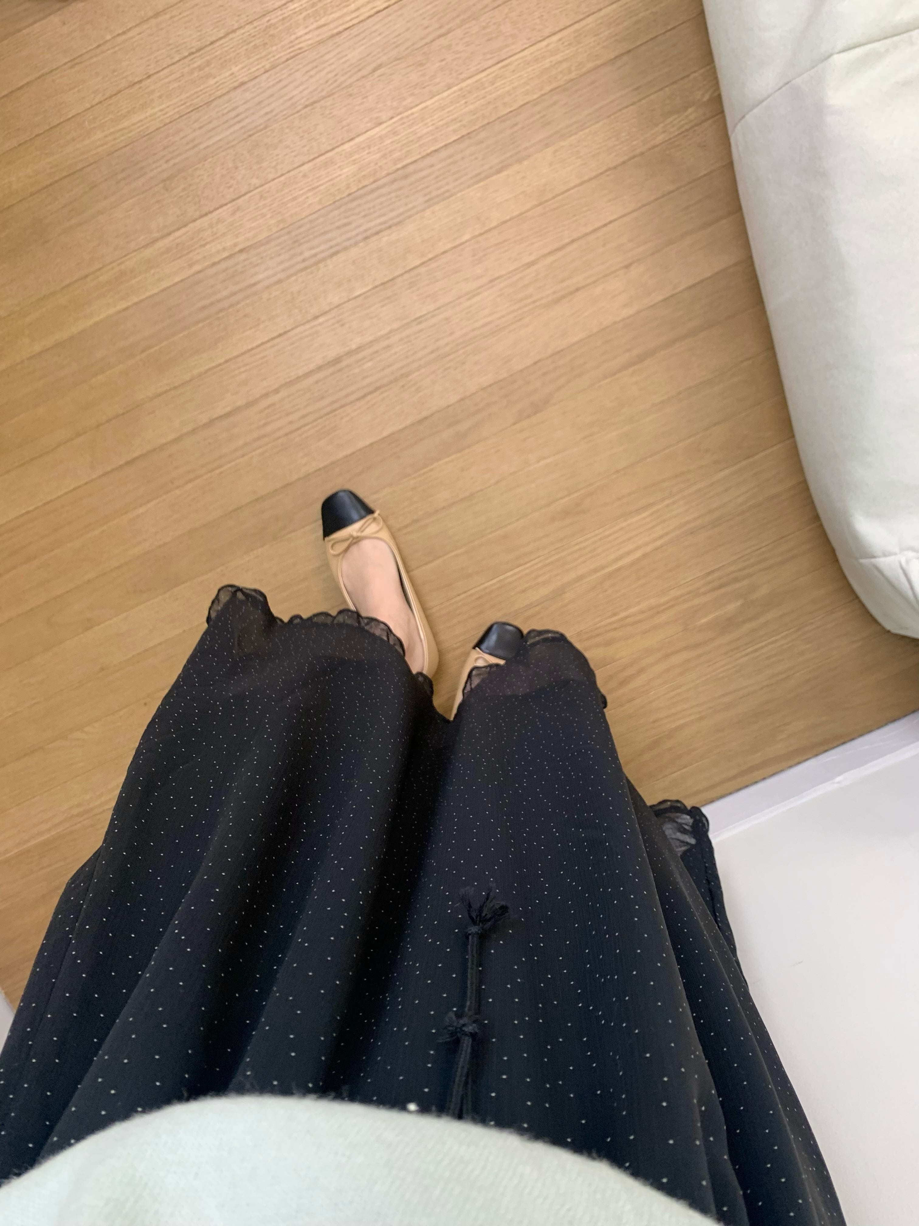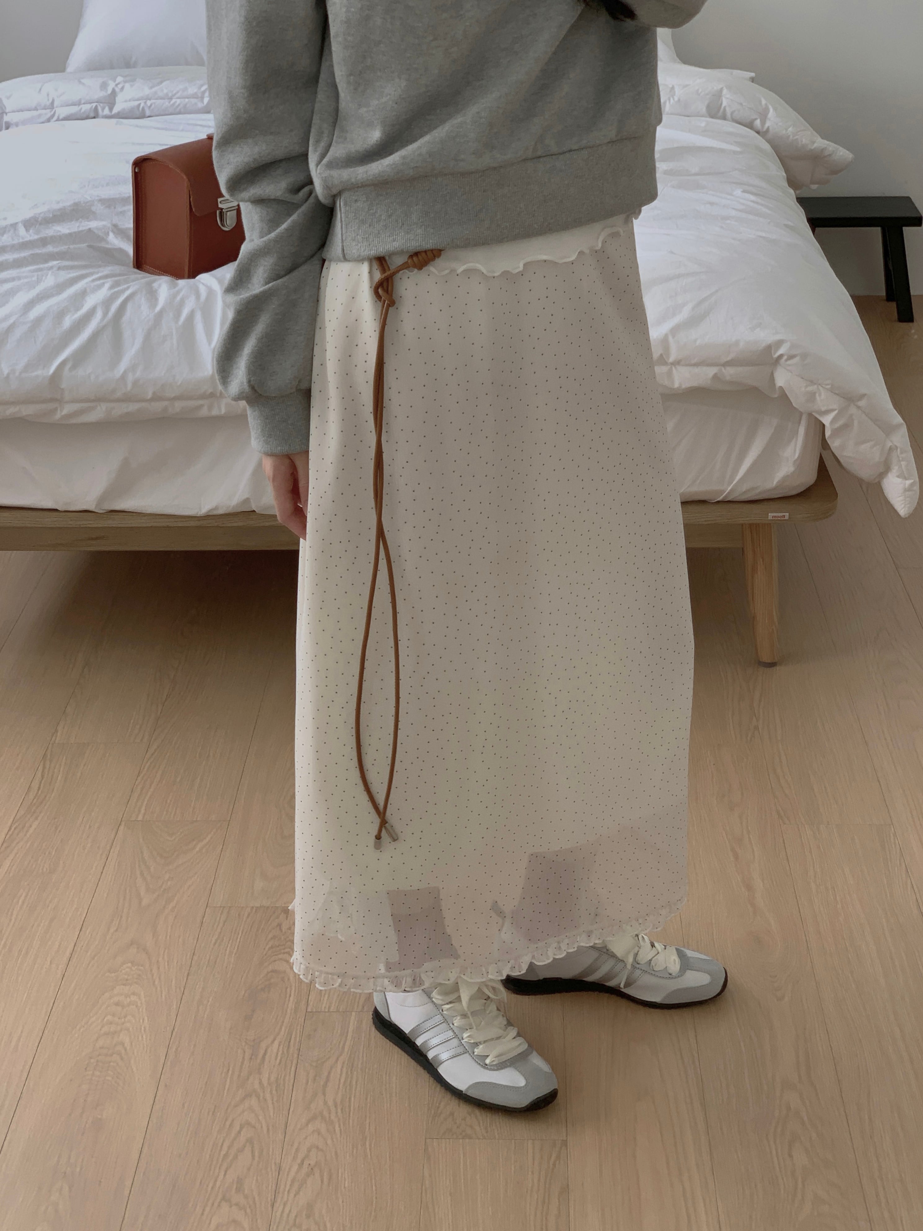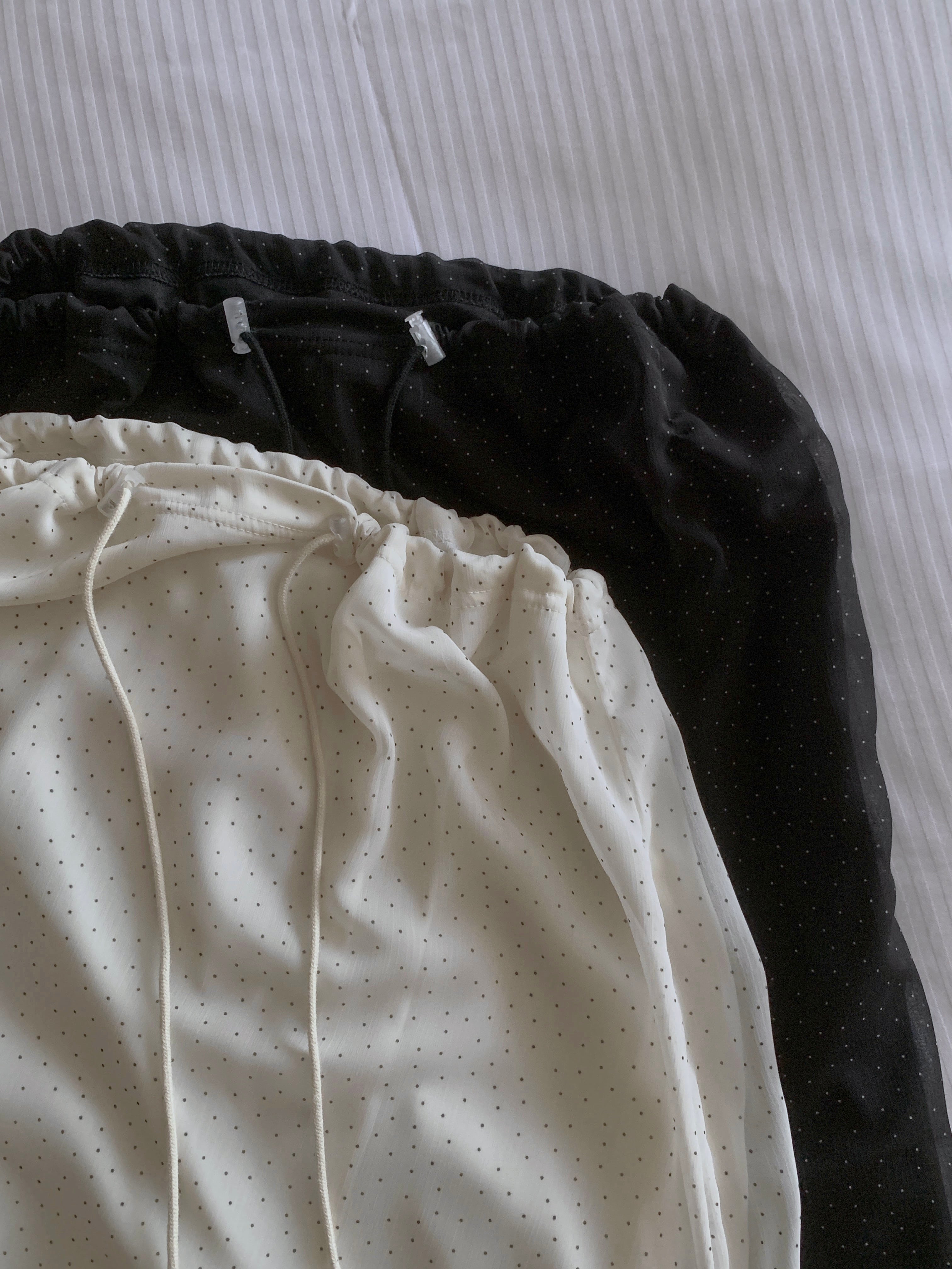 軽やかなシフォン素材に細かいドットを散りばめた、女性らしいロングスカート。