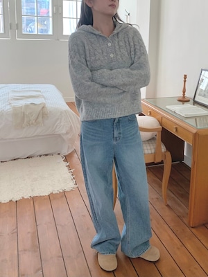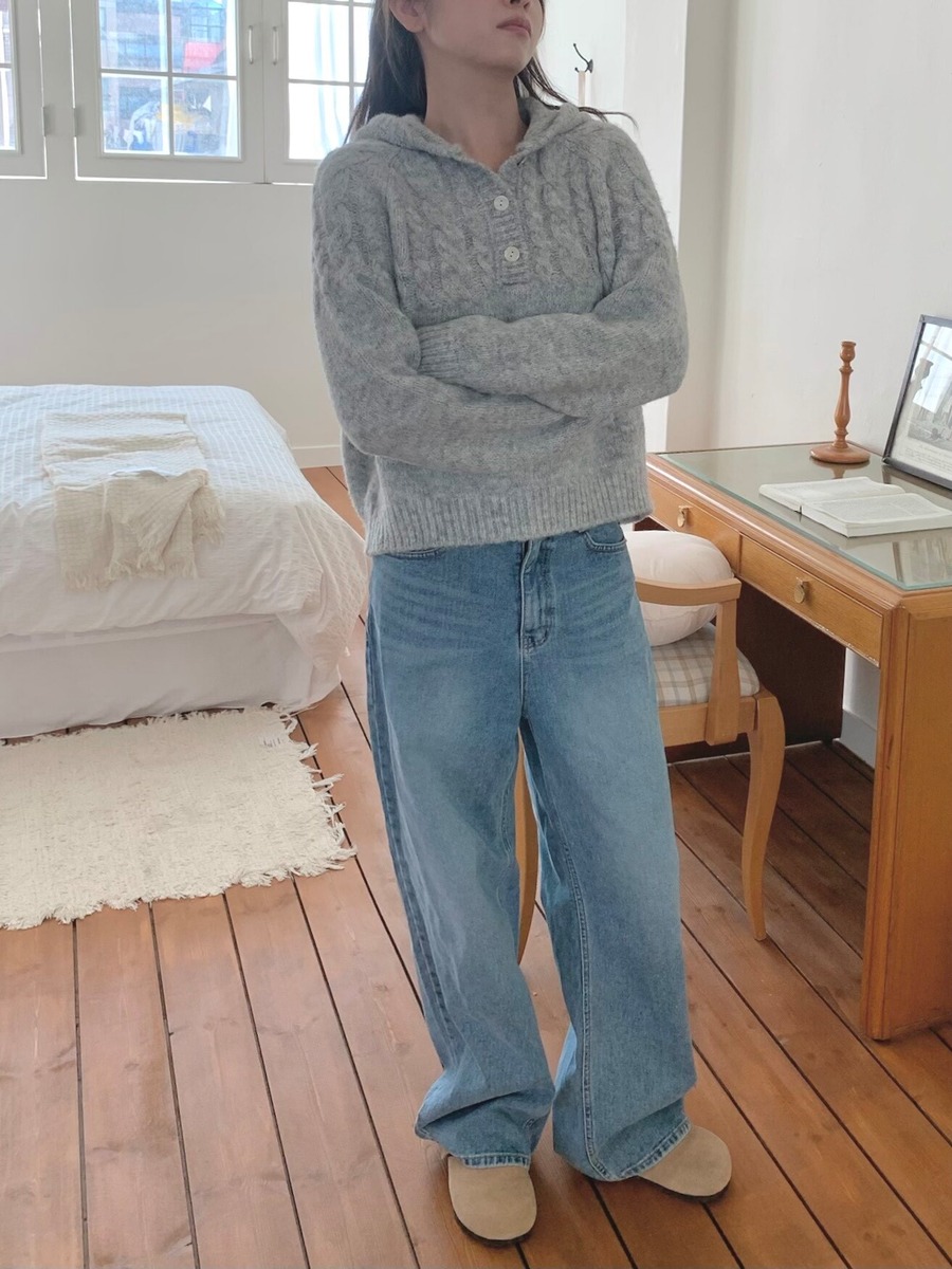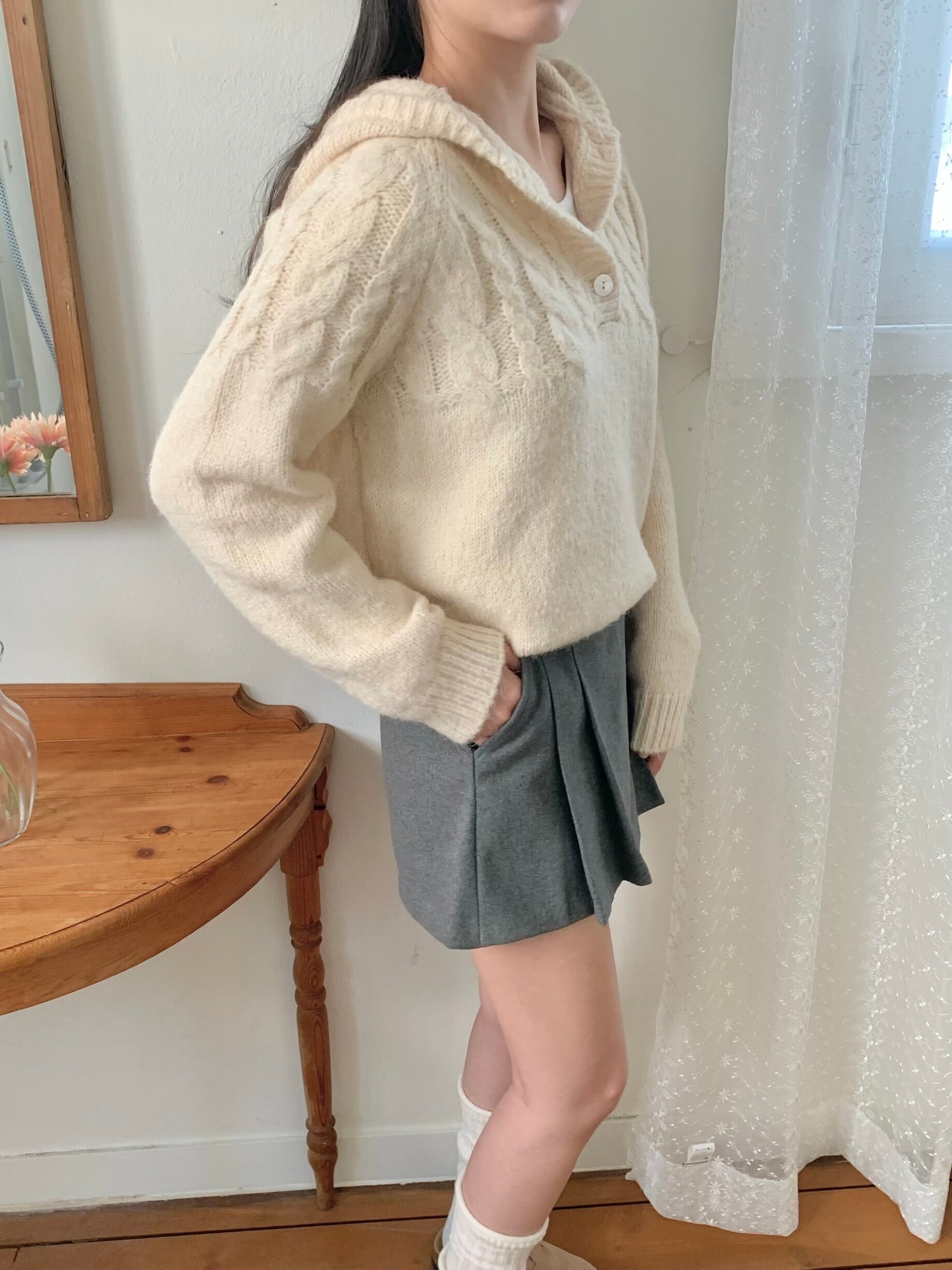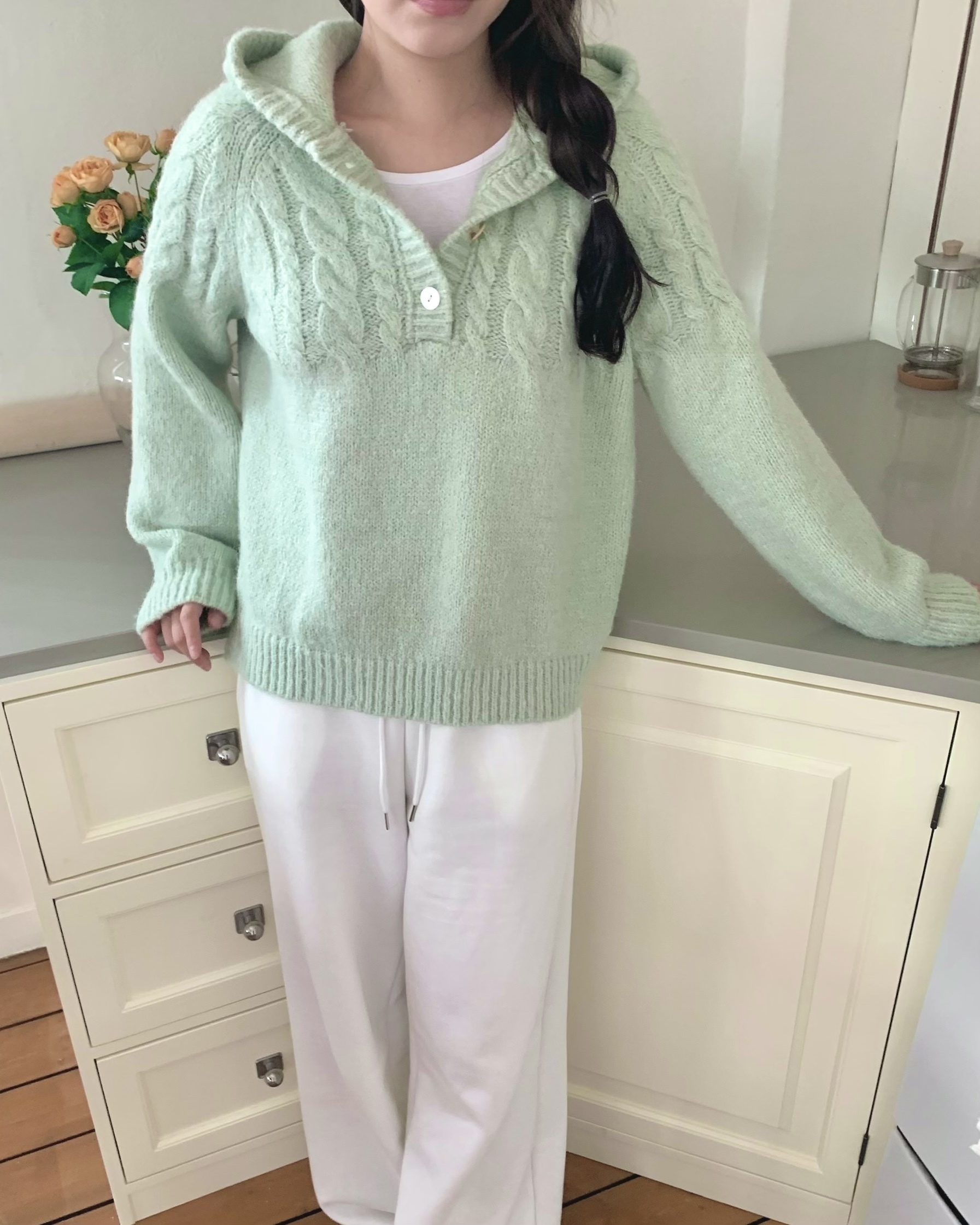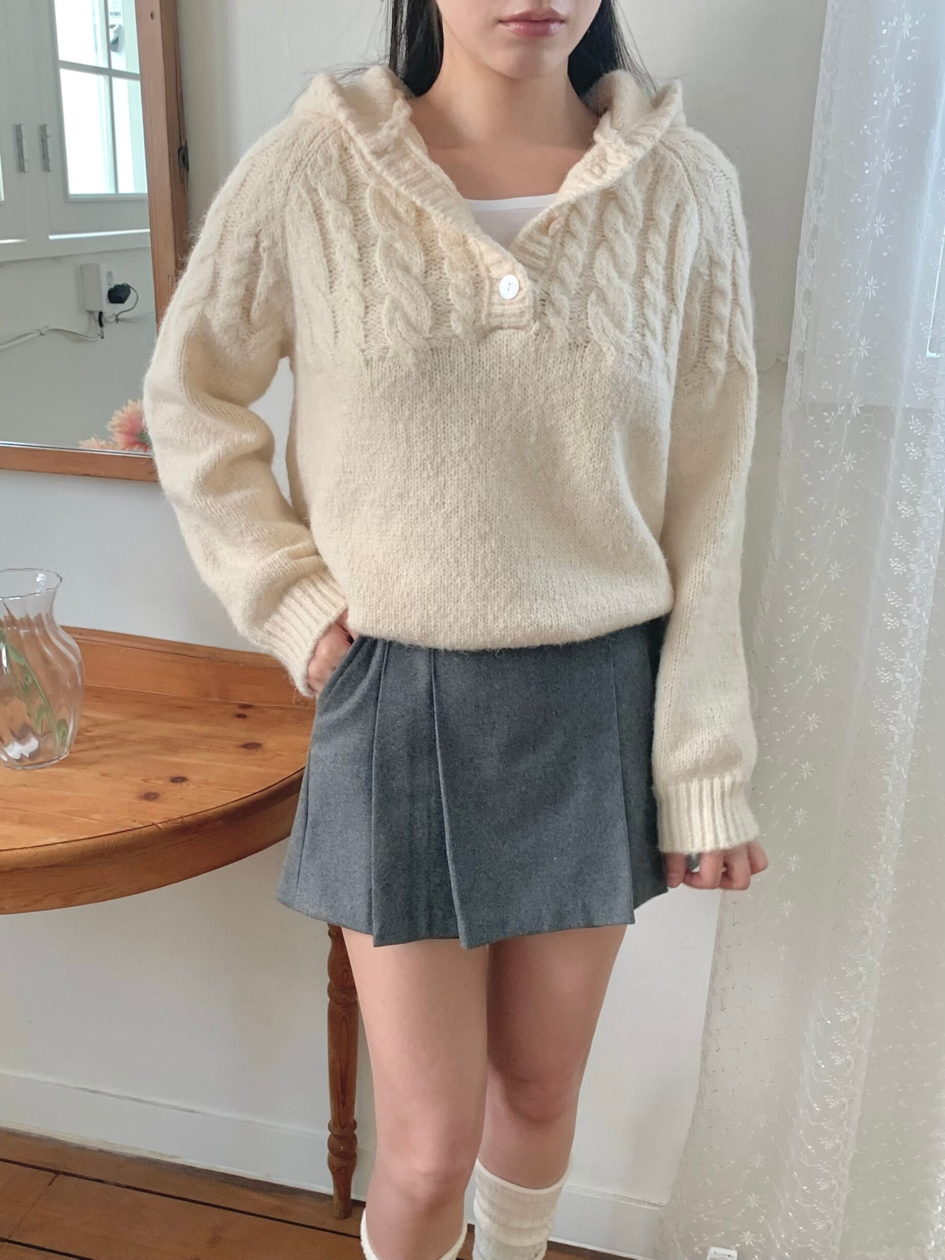 軽やかな着心地の中にも、しっかりとしたぬくもりを感じられる感性をひとさじ加えたフード付きケーブルニット。淡いパステルカラーが顔回りを明るく見せ、全体に施したふんわりとしたテクスチャーが柔らかな印象を演出します。アルパカ混のあたたかな糸で編み立てられ、軽さと保温性を両立した着心地が魅力。さりげないケーブル編みが過度にならず、上品なポイントに。フロントにはシェルボタンをあしらい、清楚で女性らしいムードをプラス。フードディテールでニット特有のクラシックさの中に少しカジュアルで愛らしい雰囲気を感じられます。程よくゆとりのあるシルエットで、体型カバーにも。軽く羽織るだけでも十分に暖かく、コートのインナーとして、季節の変わり目には一枚でも活躍します。
