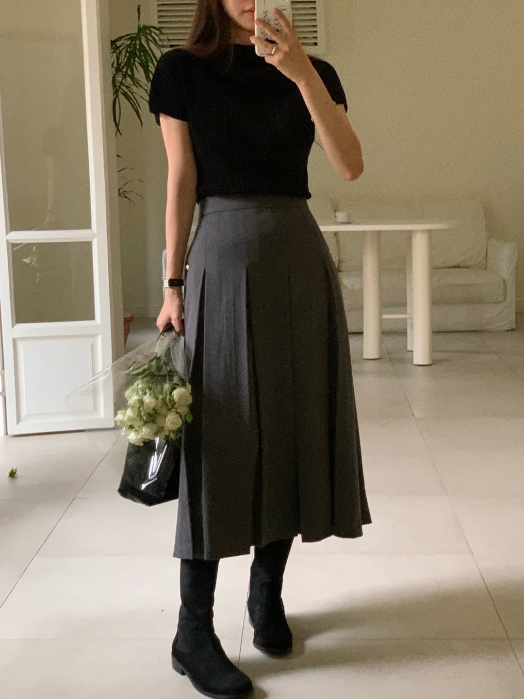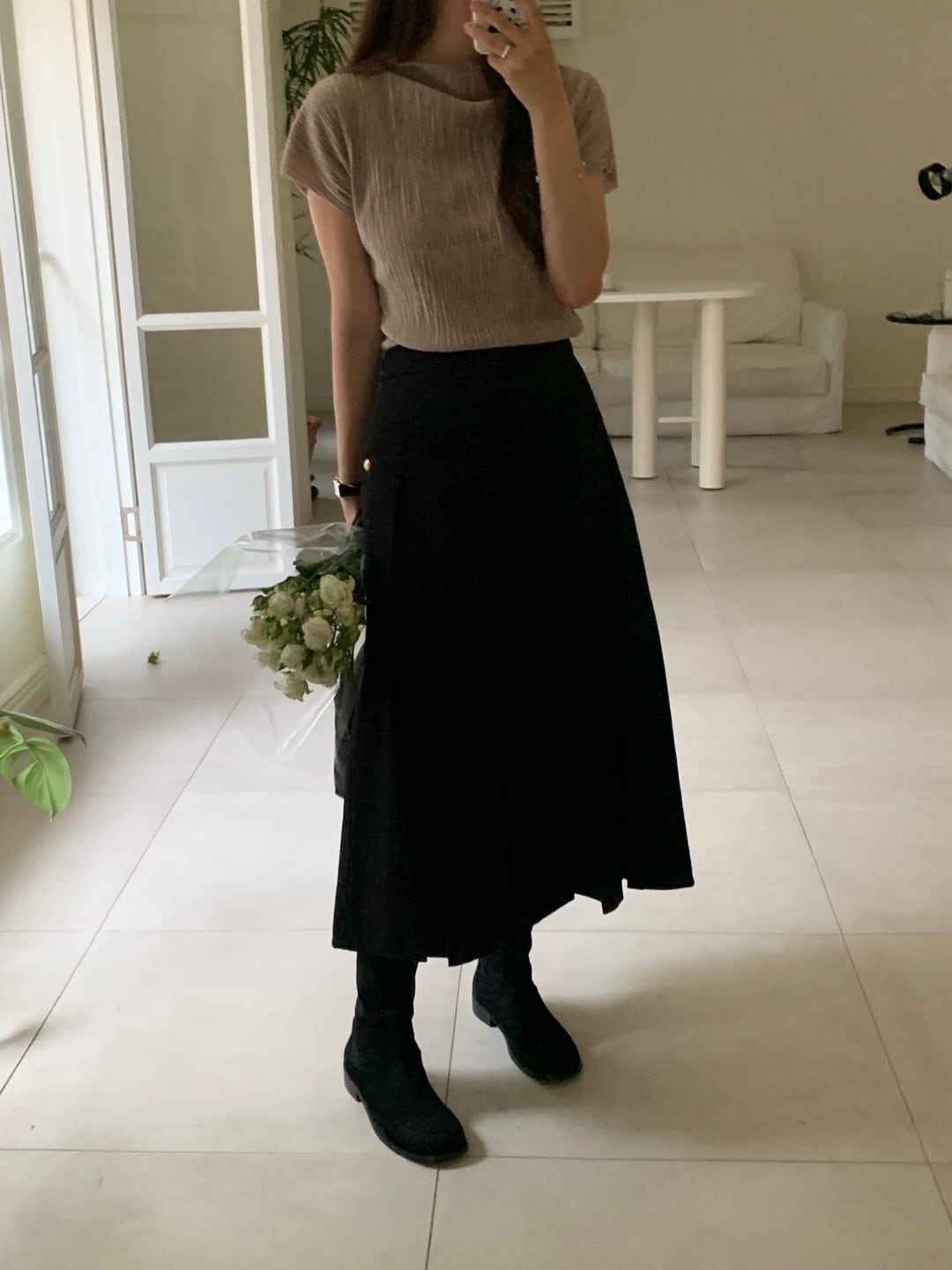 上品な揺れ感が魅力のプリーツスカート。ふんわり広がるAラインシルエットが、女性らしい立ち姿を演出。ウエスト周りはすっきりと仕上げ、体のラインを美しく整えてくれるデザイン。フロントに施したタックプリーツが縦のラインを強調し、スタイルアップ効果も期待。サイドには、さりげなく輝くゴールドボタンをプラス。シンプルの中にしっかりアクセントを添え、上品さを際立たせます。程よく厚みのある生地で、ニットやブラウスなどどんなトップスとも相性が良く、オフィスから休日のお出かけまで幅広いシーンで活躍してくれます。