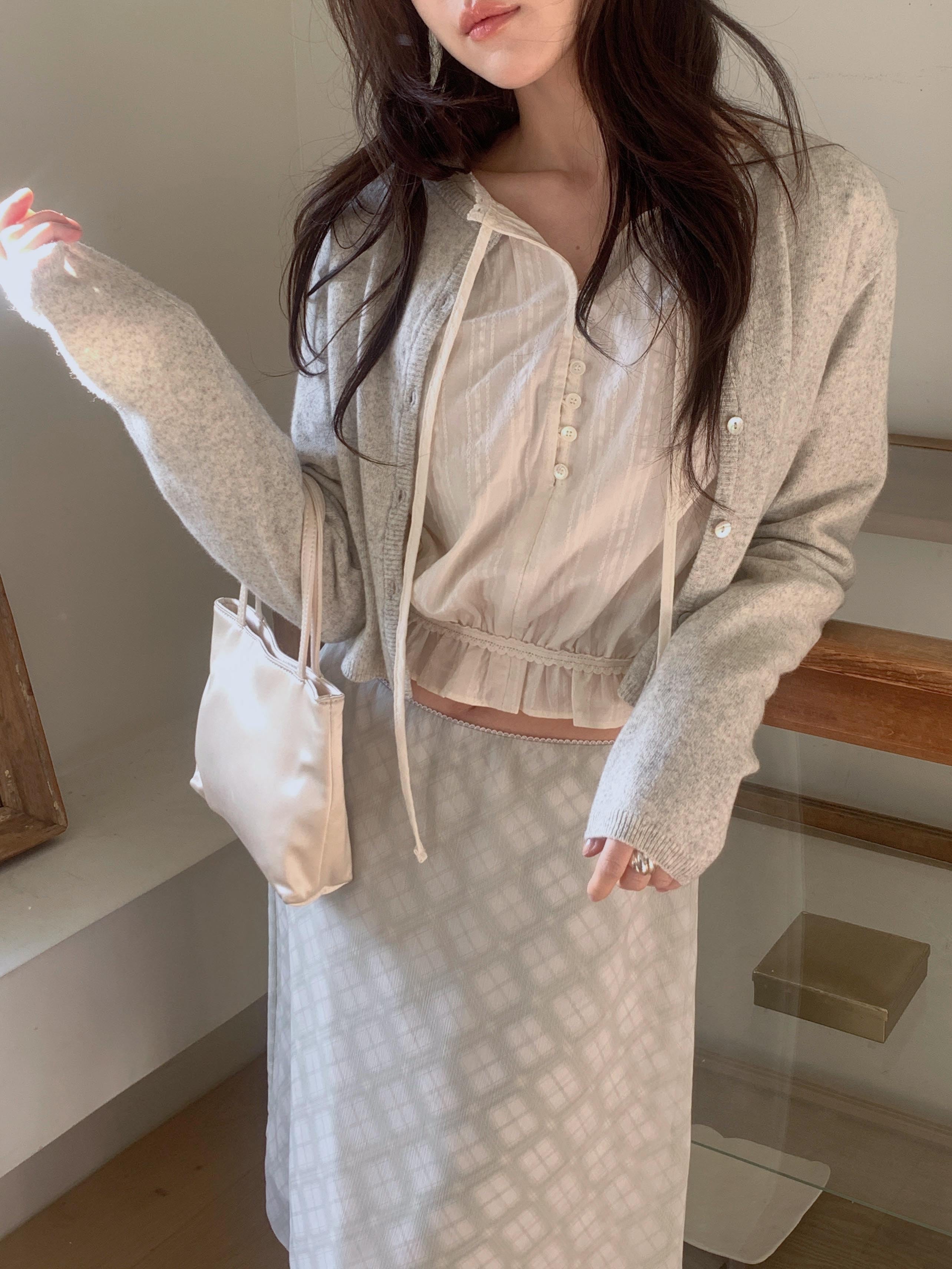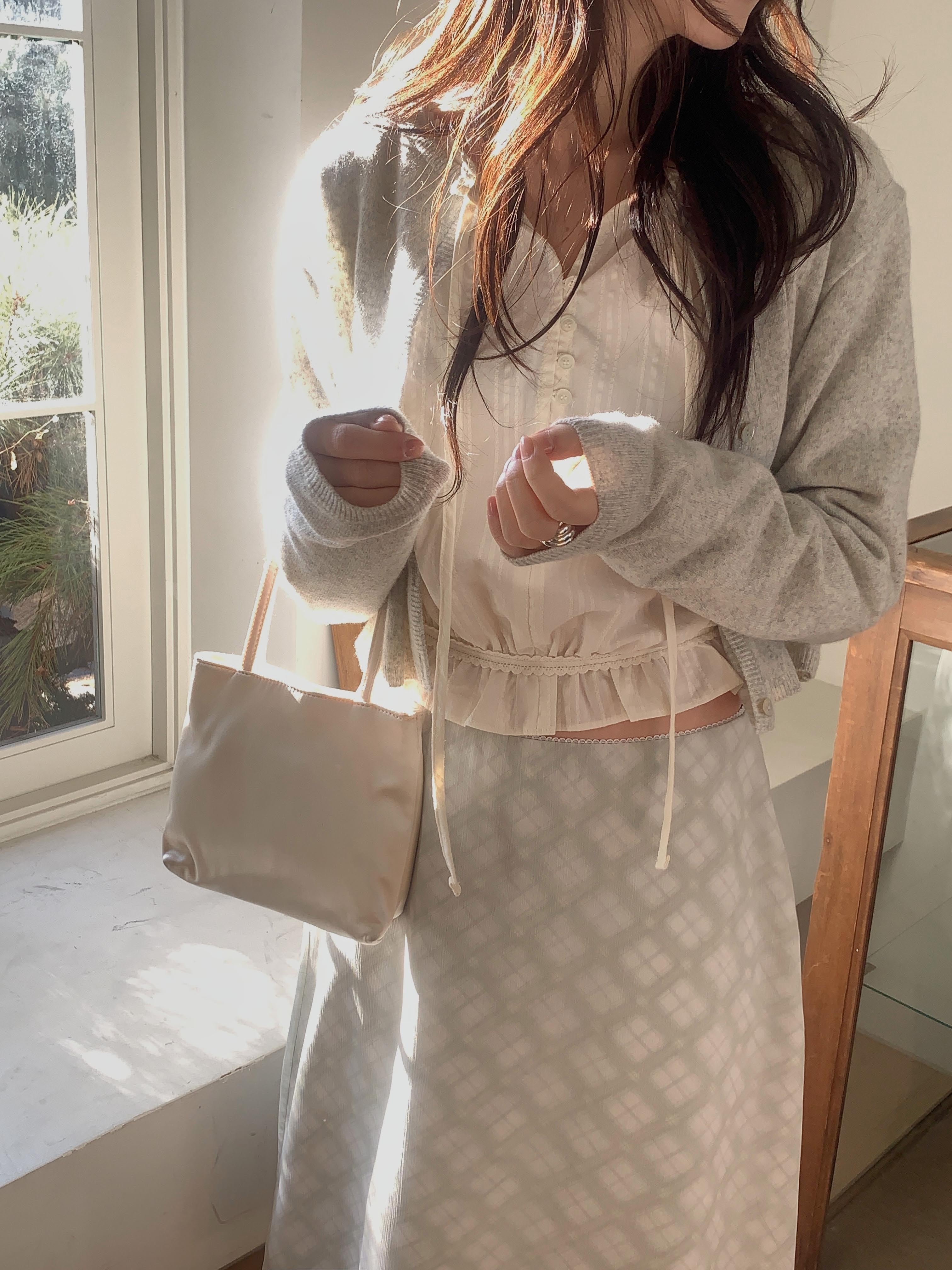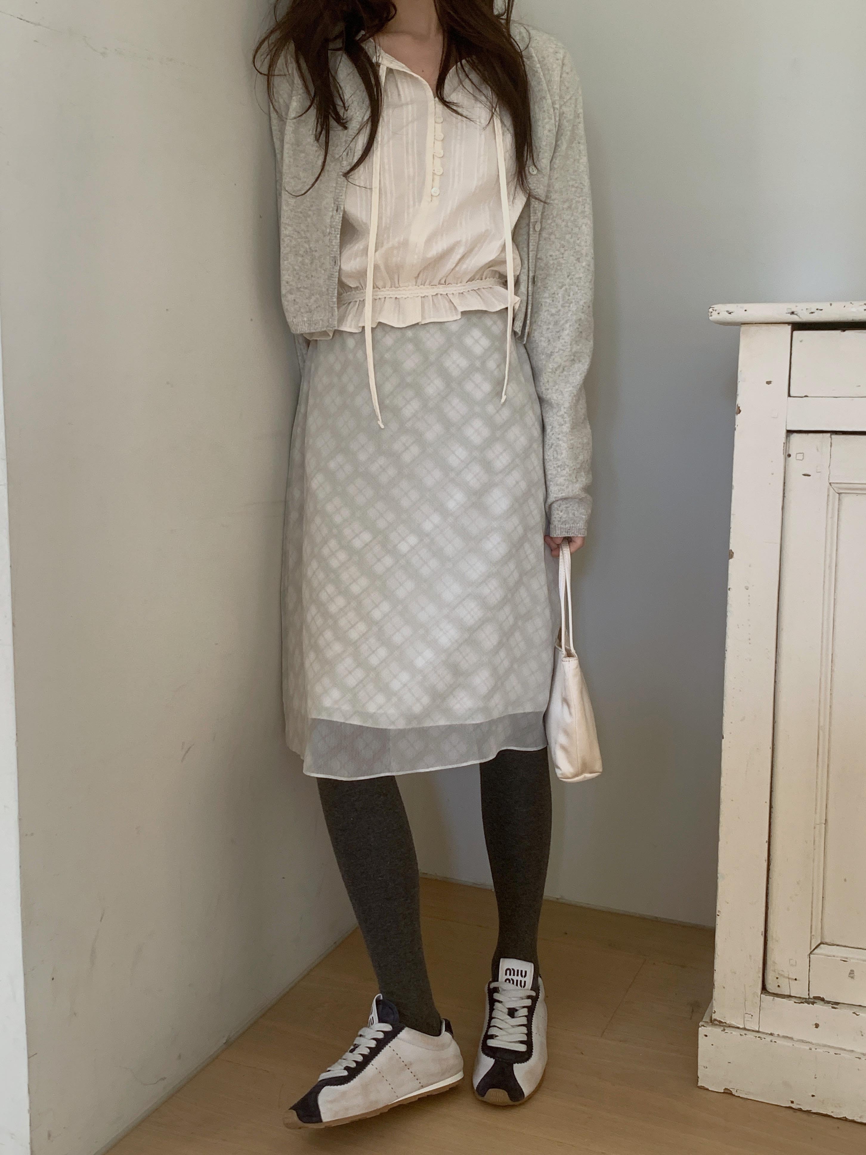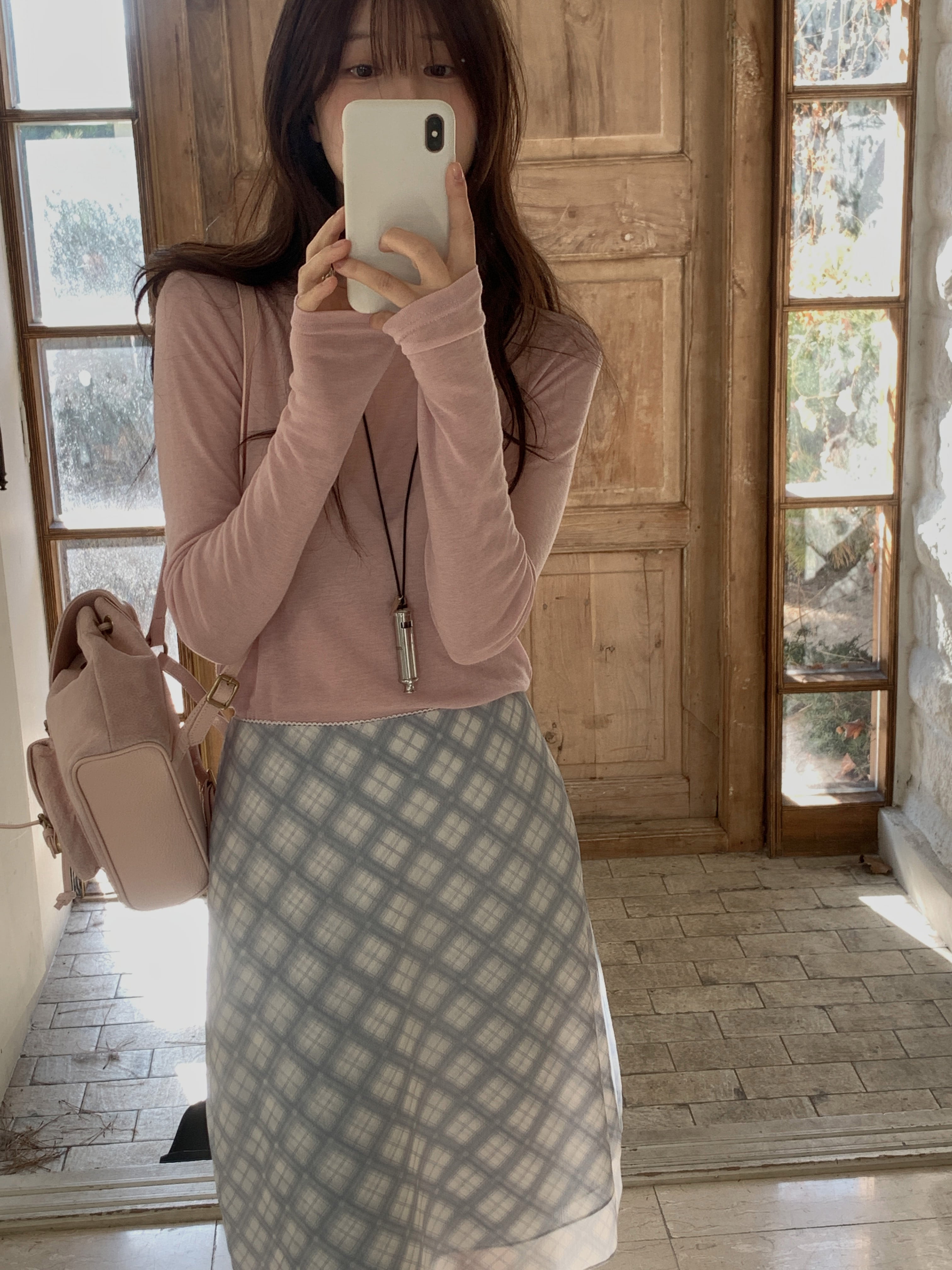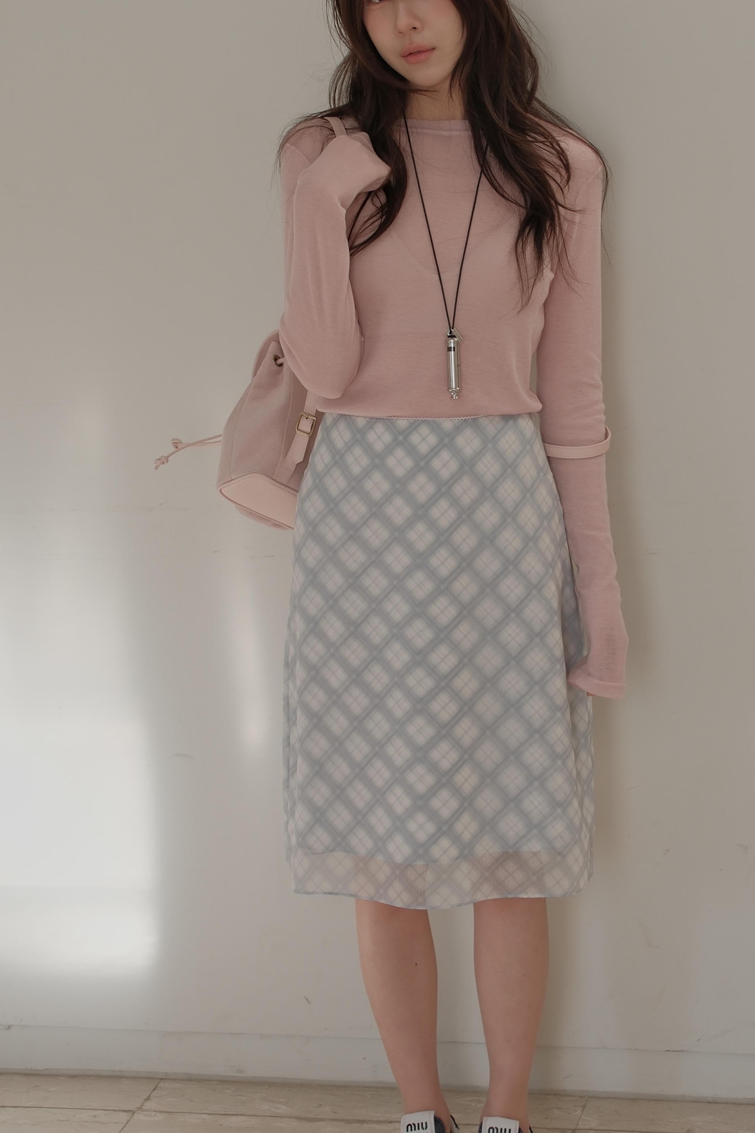淡く優しいカラーのチェック柄が落ち着いた印象で、甘くなりすぎず大人っぽく着こなせるデザイン。