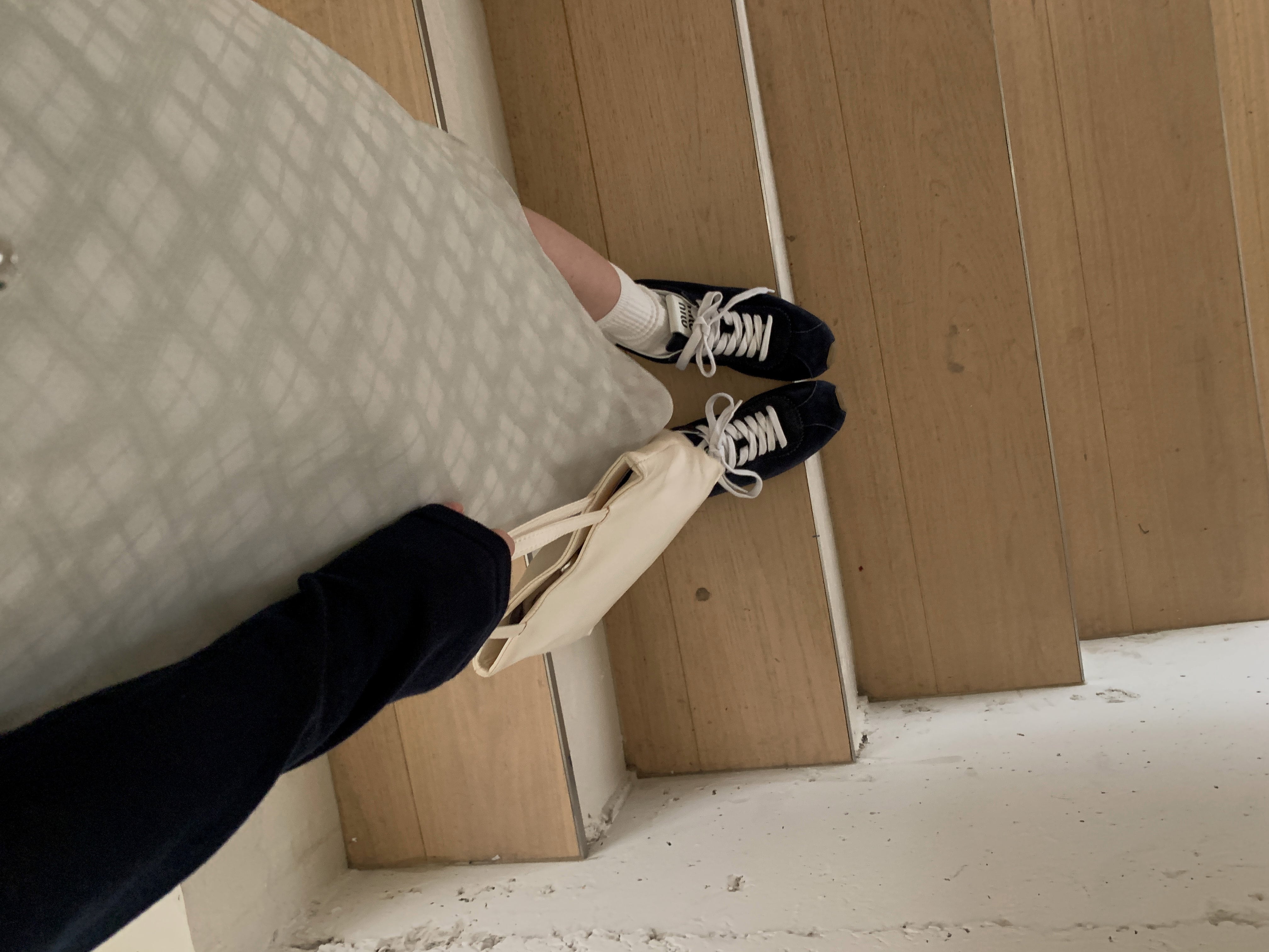スニーカーと合わせてカジュアルダウンしてコーディネートするのがおすすめ。
