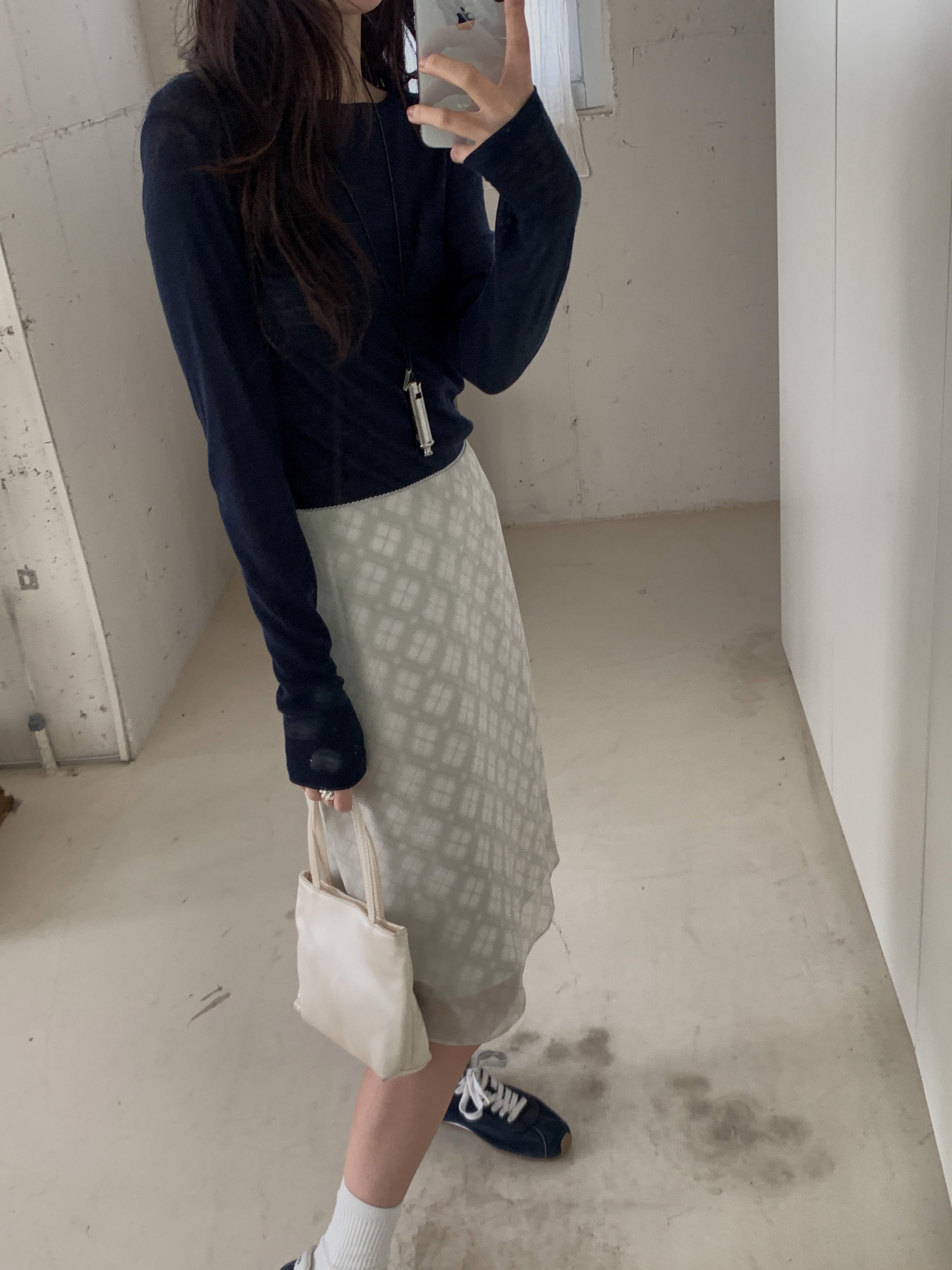 透け感のある軽やかな素材が使われており、歩くたびにふんわりと揺れるシルエットがナチュラルな女性らしさを引き立てます。