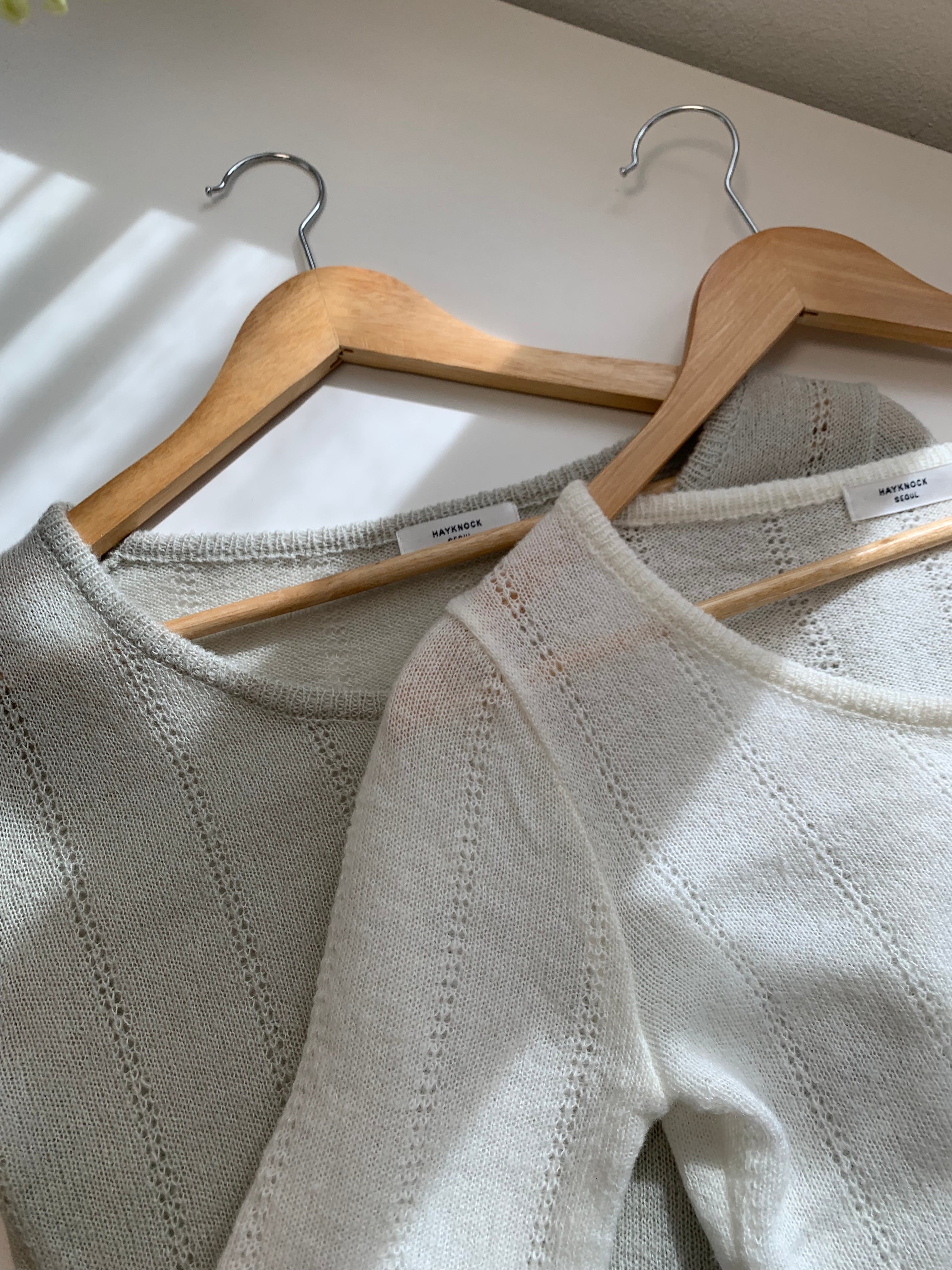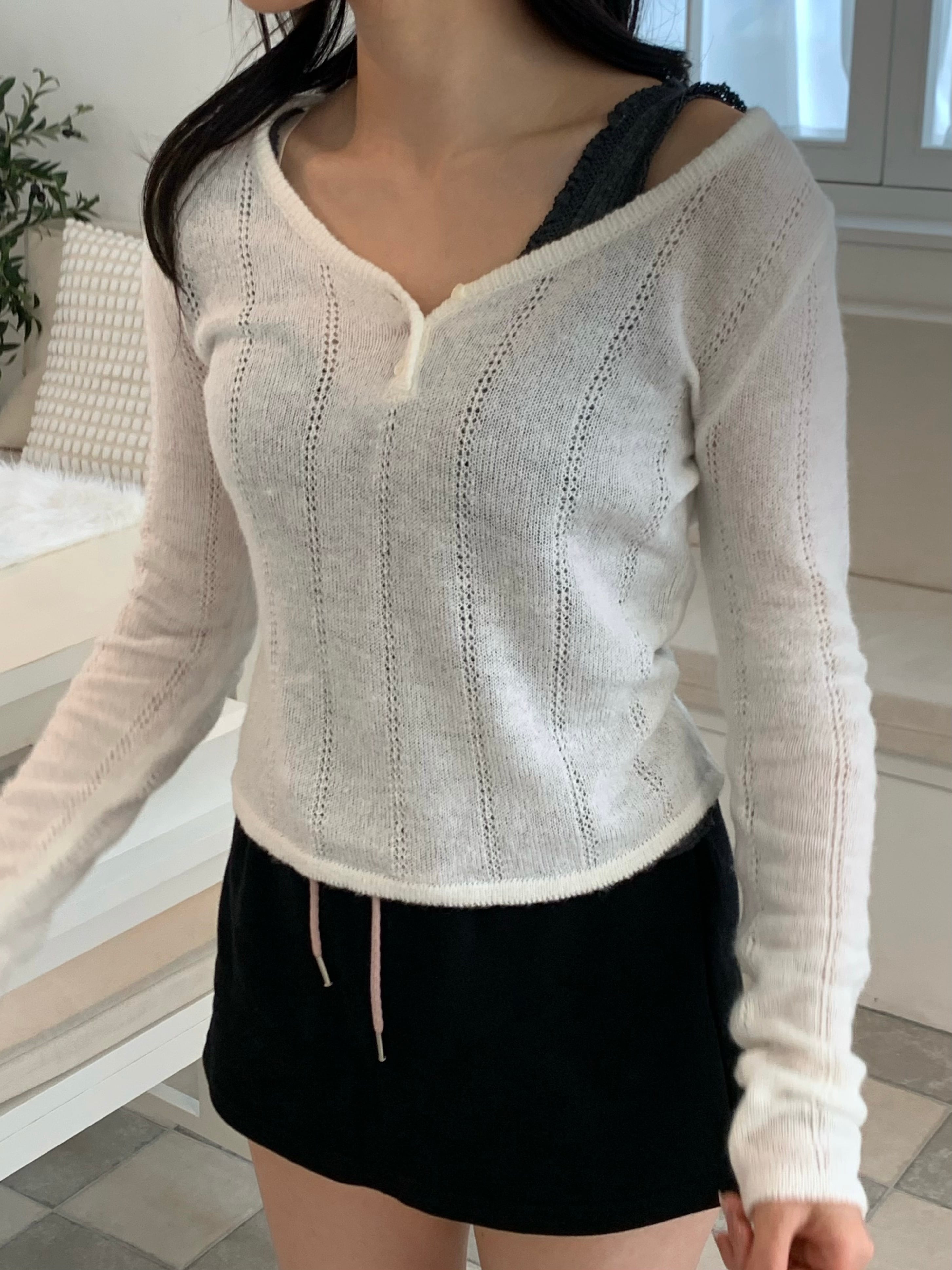 透かし編みが可愛らしいニットトップス。