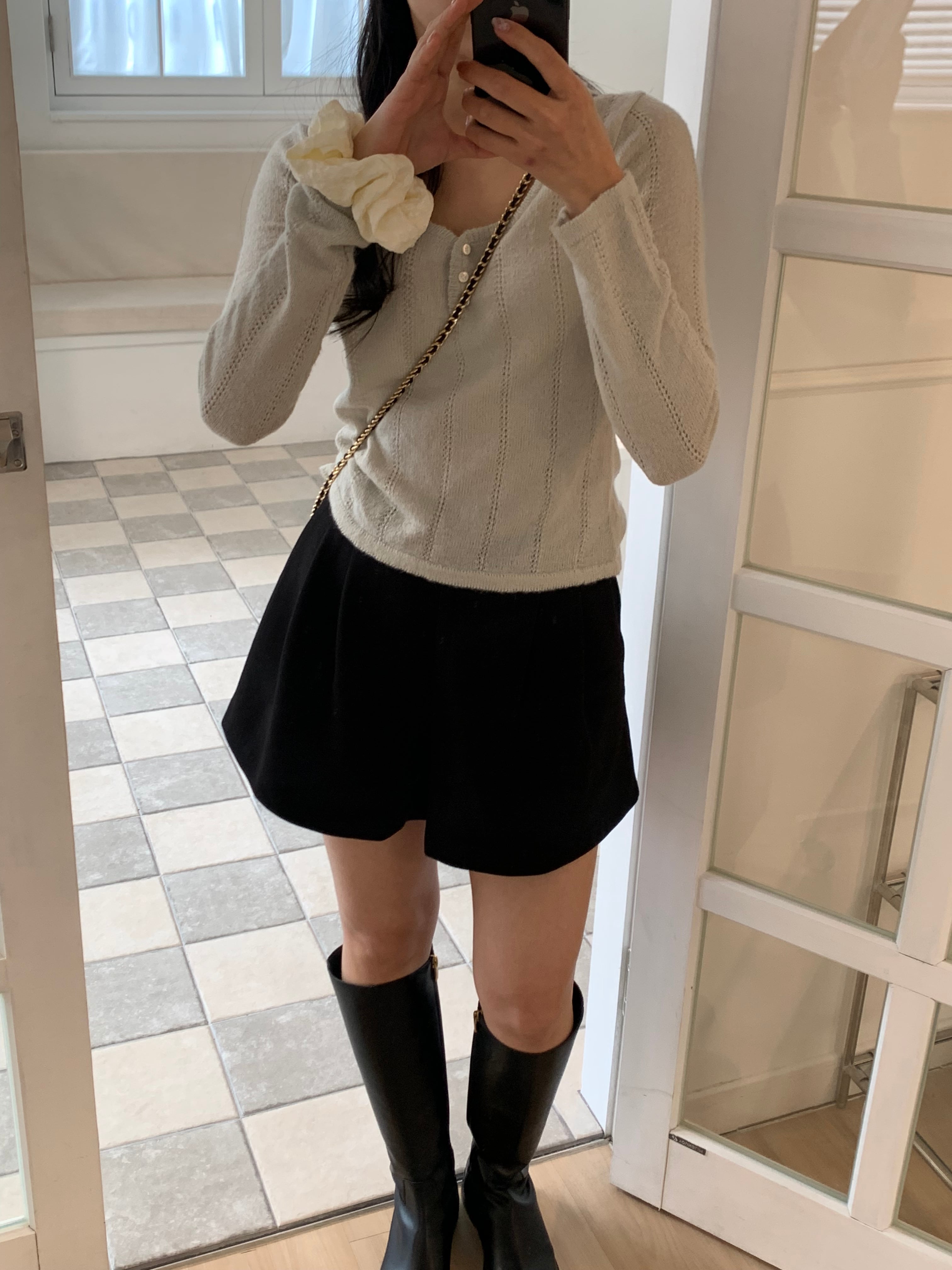 スカートやデニムなどボトムスを選ばず、様々なスタイリングを楽しめる1枚になっています。