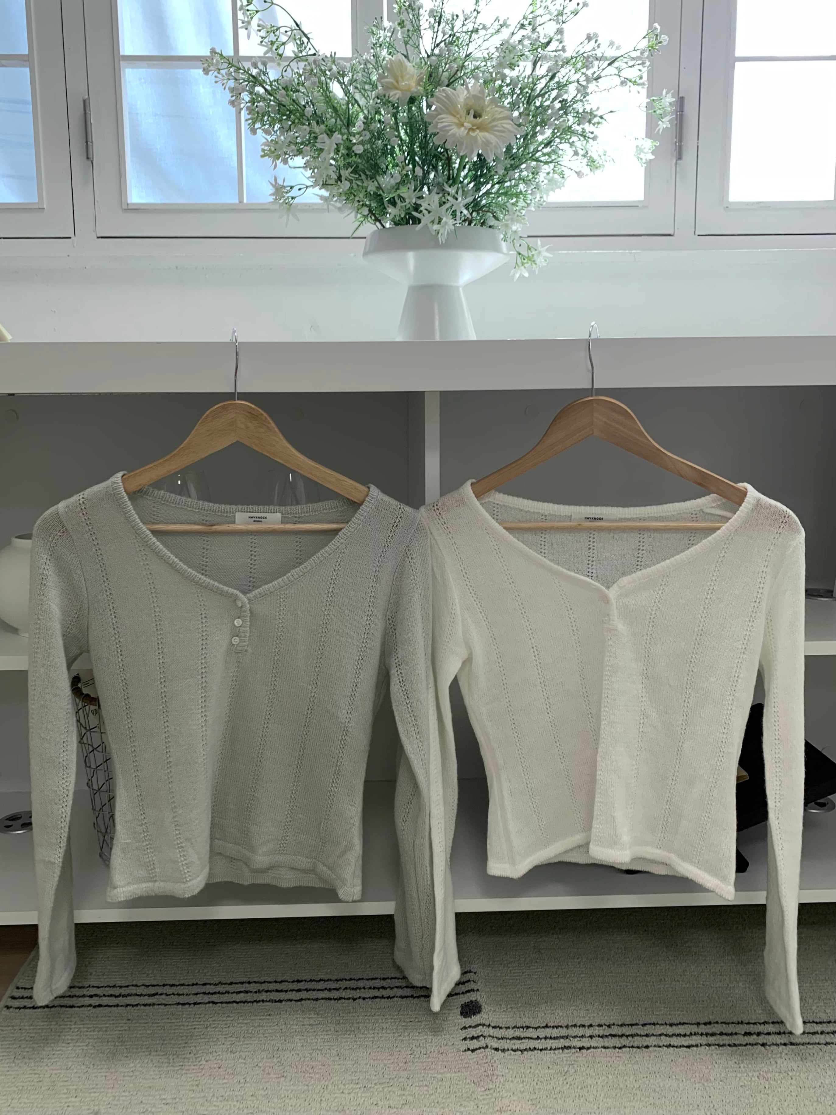 モヘア素材を使用しており、軽く柔らかい着心地でキャミソールやインナーとのレイヤードにもおすすめです。