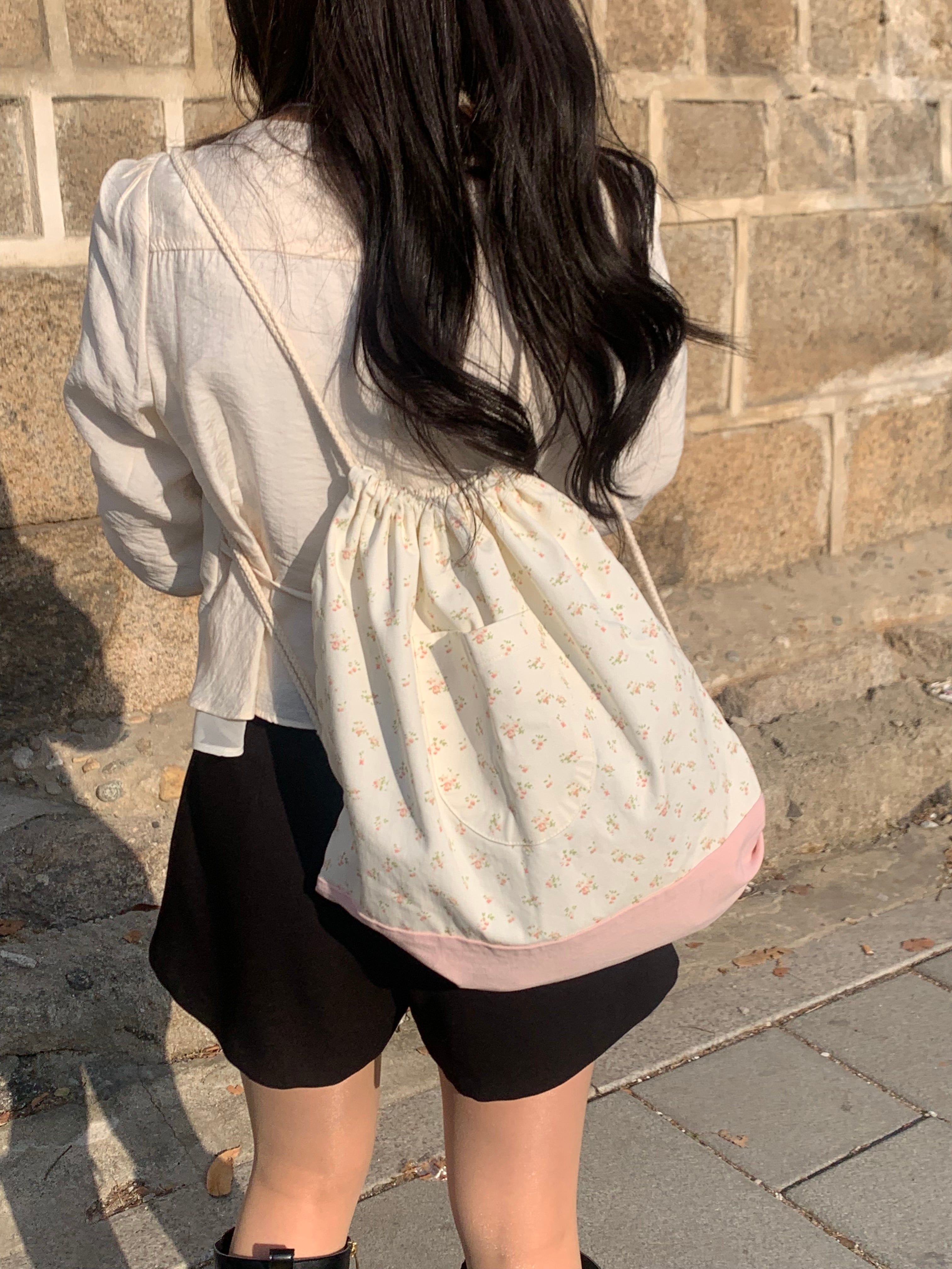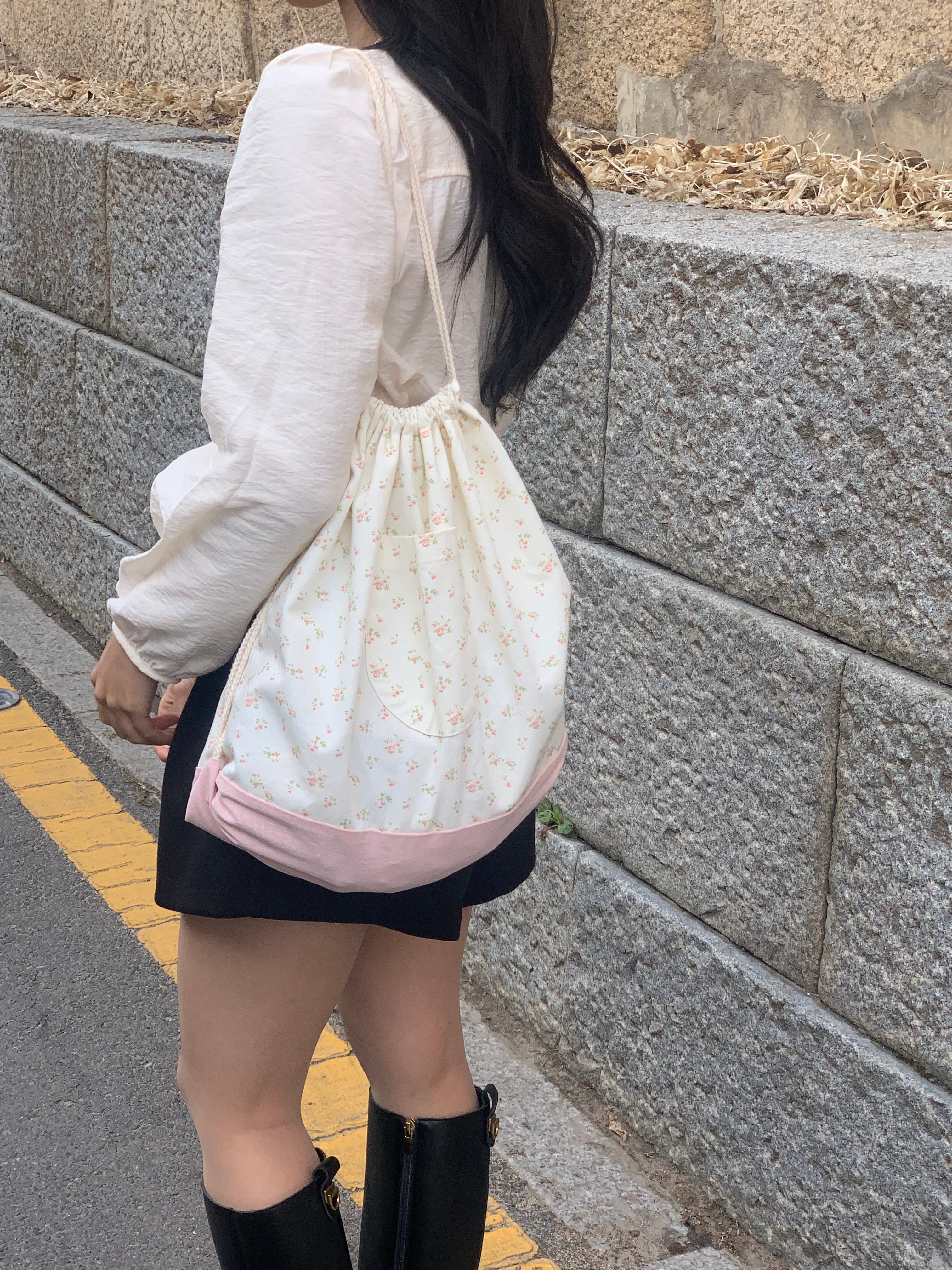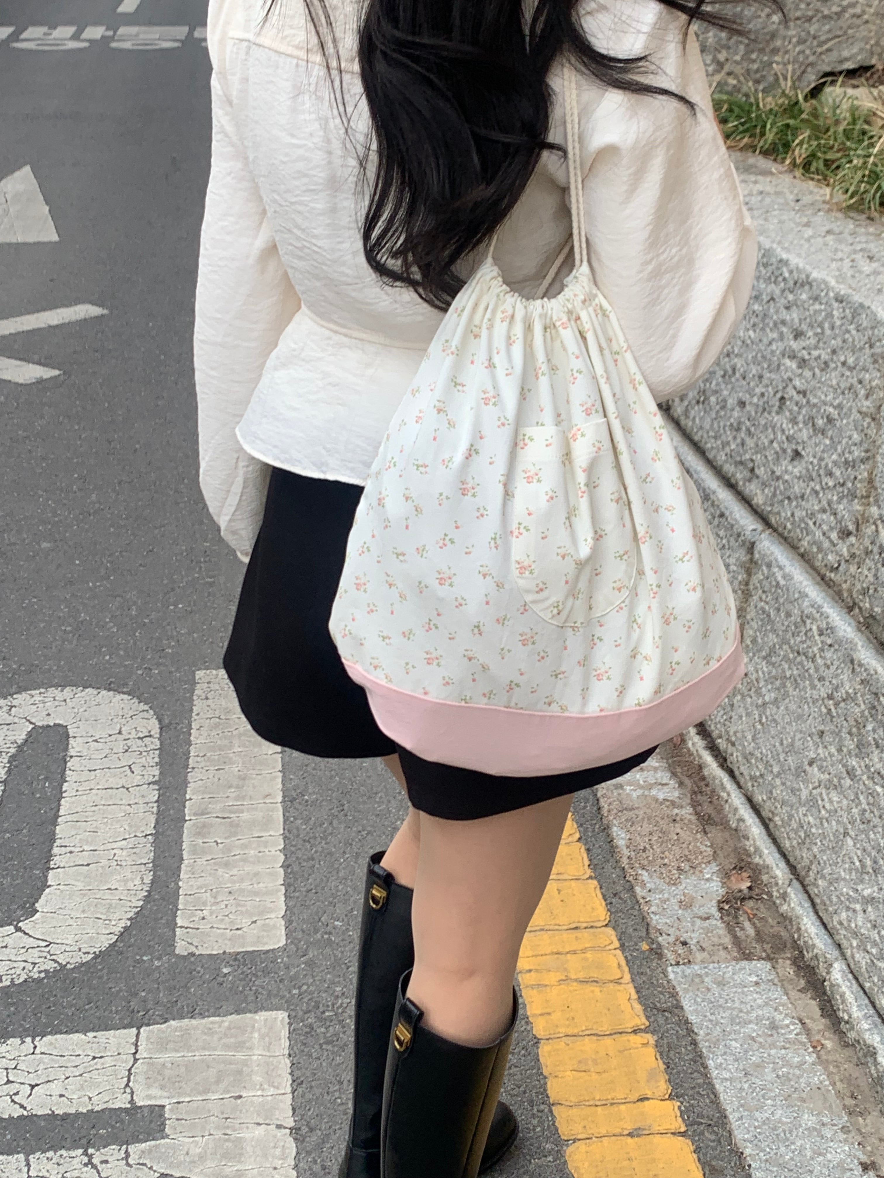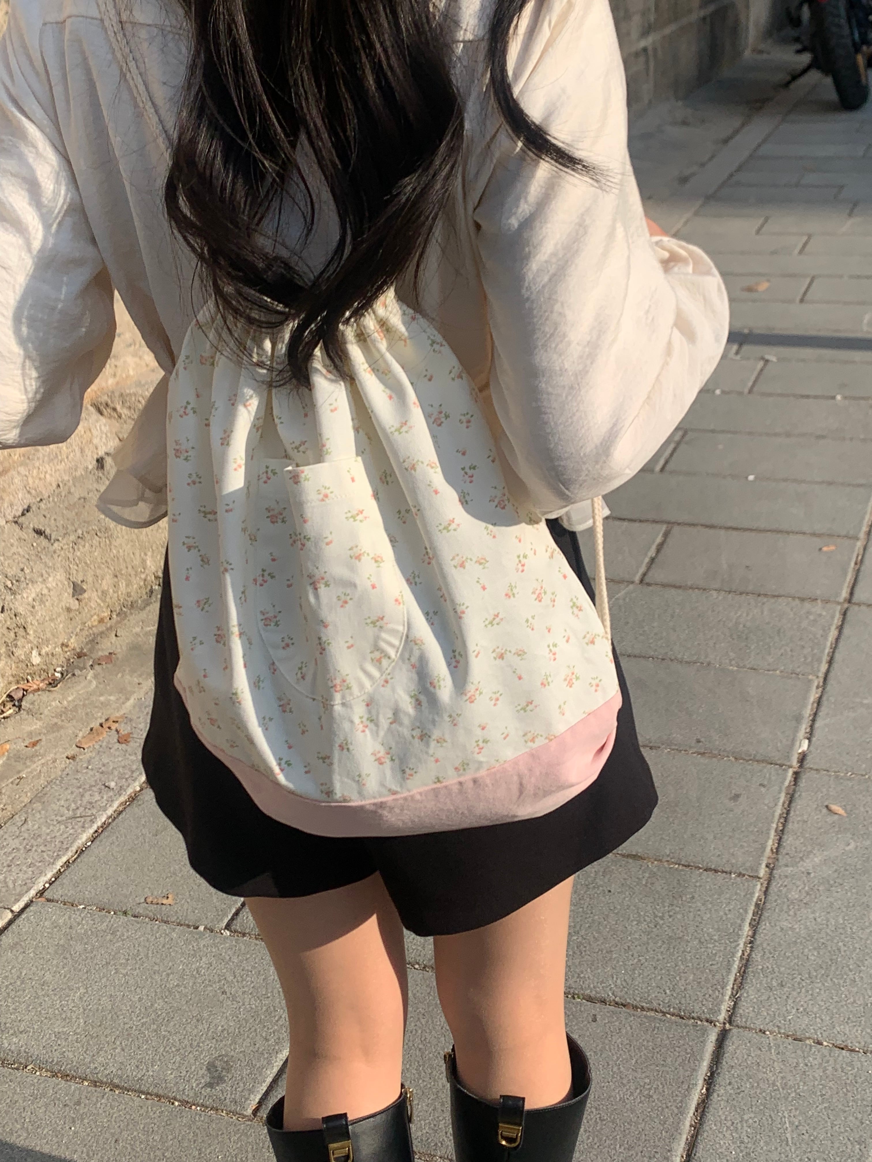 キュートな小花柄が目を引く、ナチュラルガーリーな巾着バッグ。