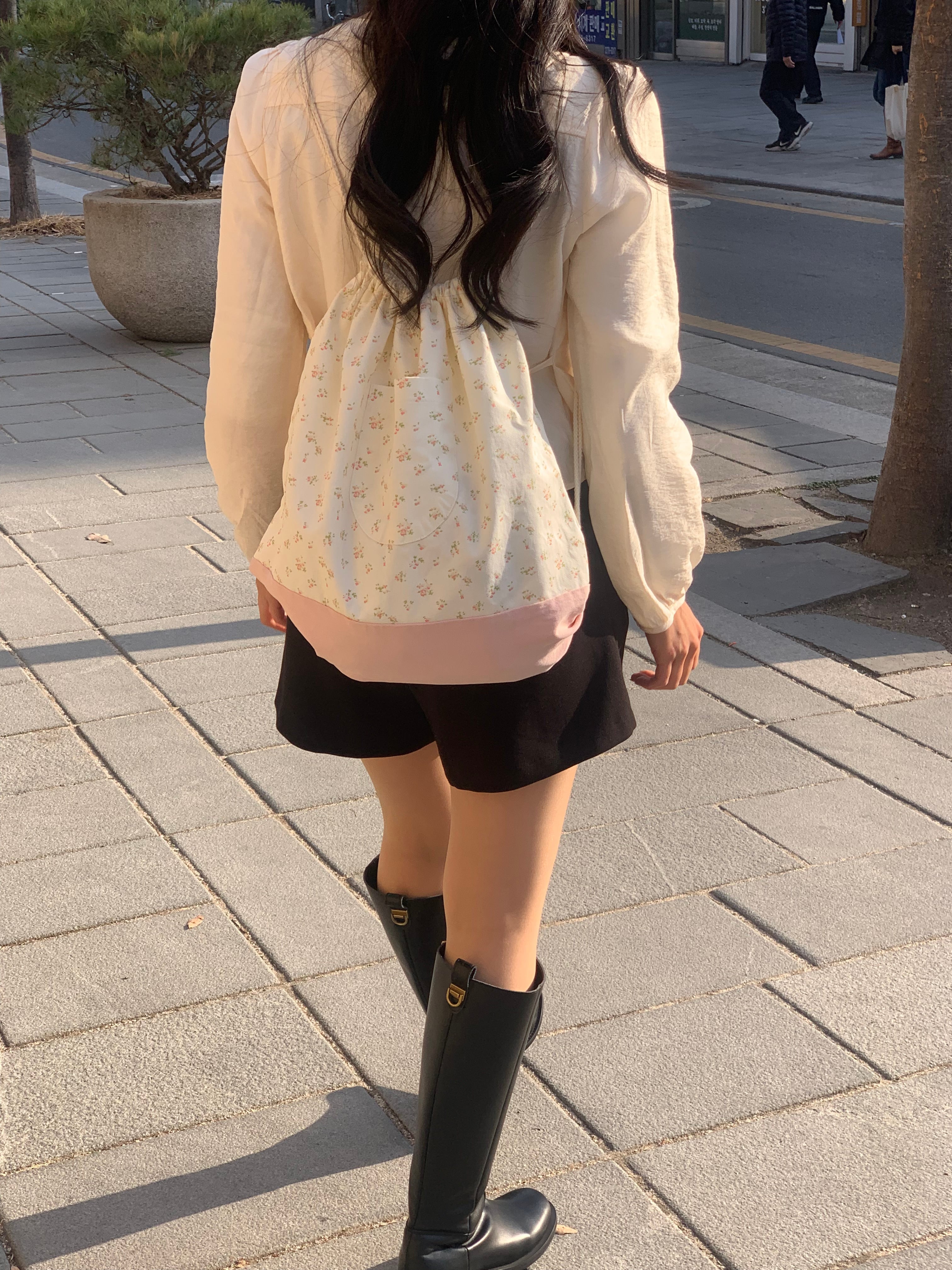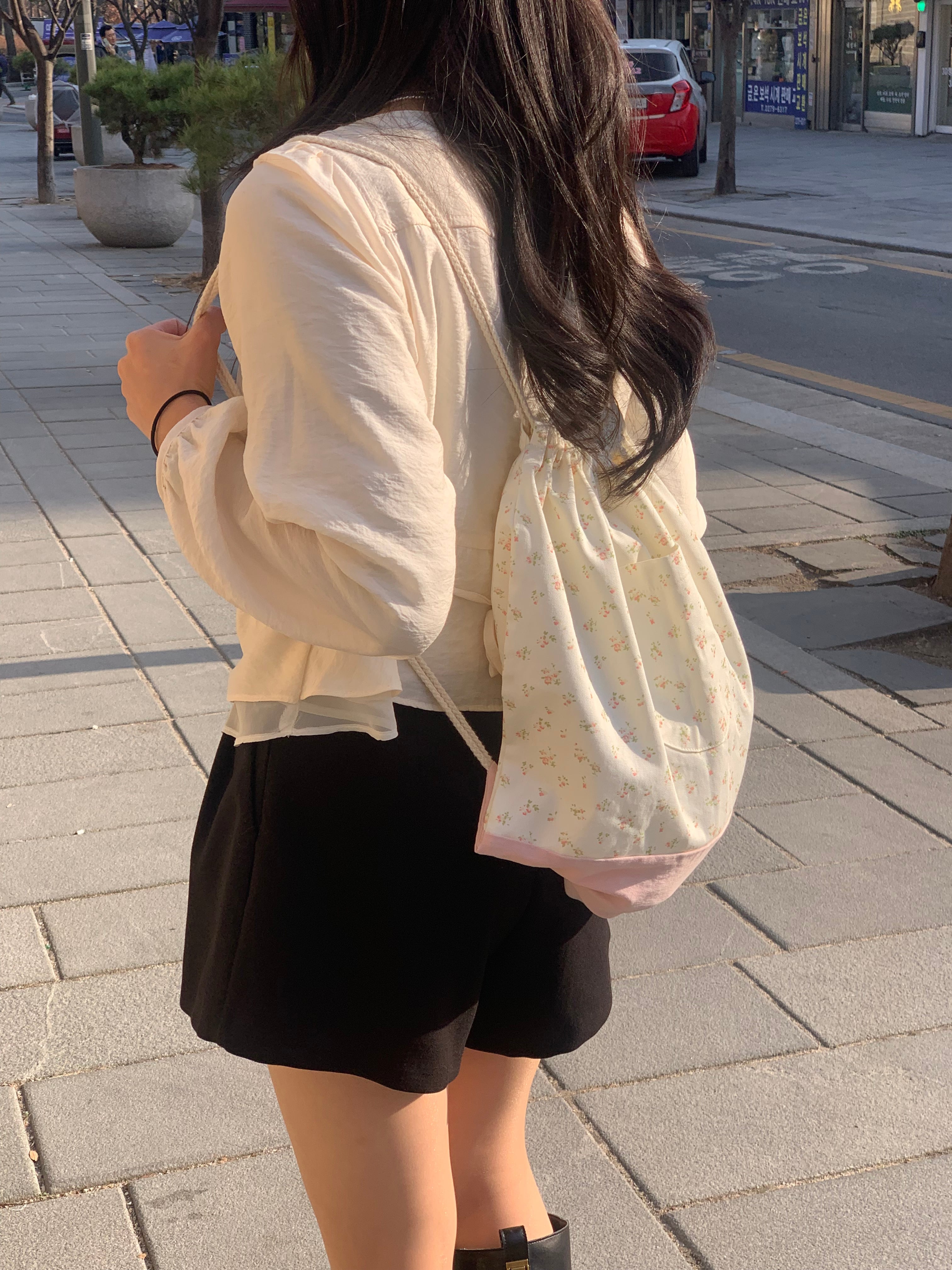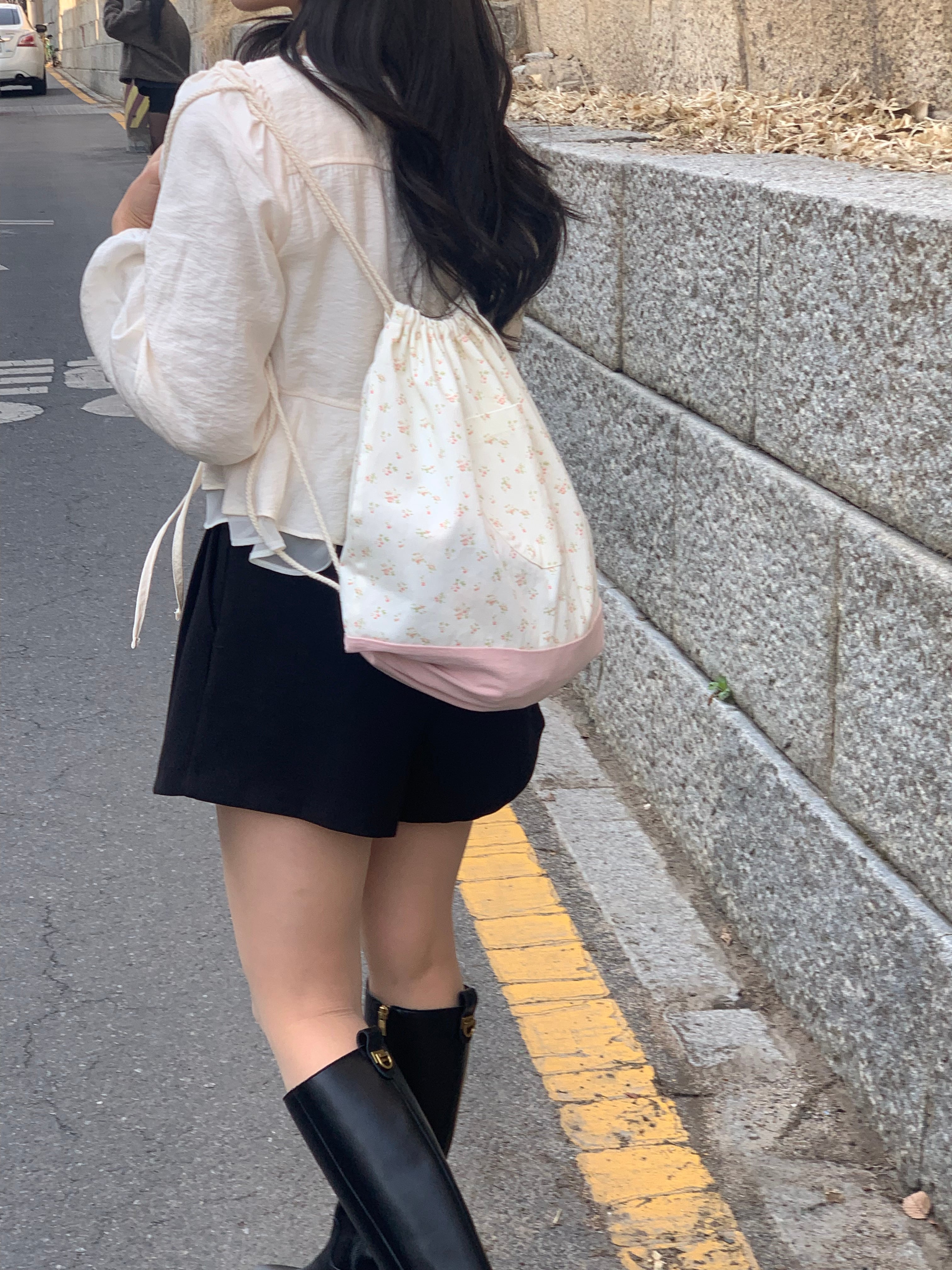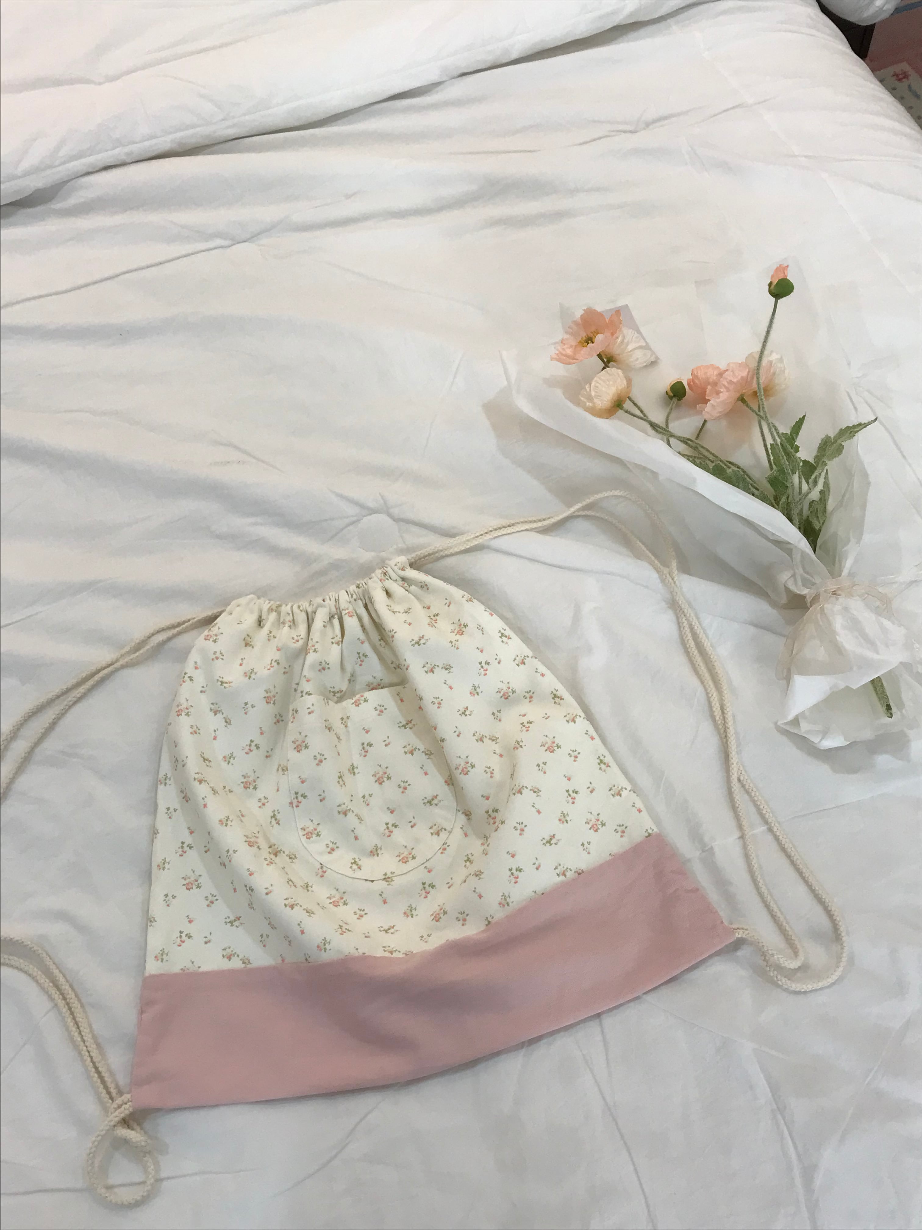 キュートな小花柄が目を引く、ナチュラルガーリーな巾着バッグ。