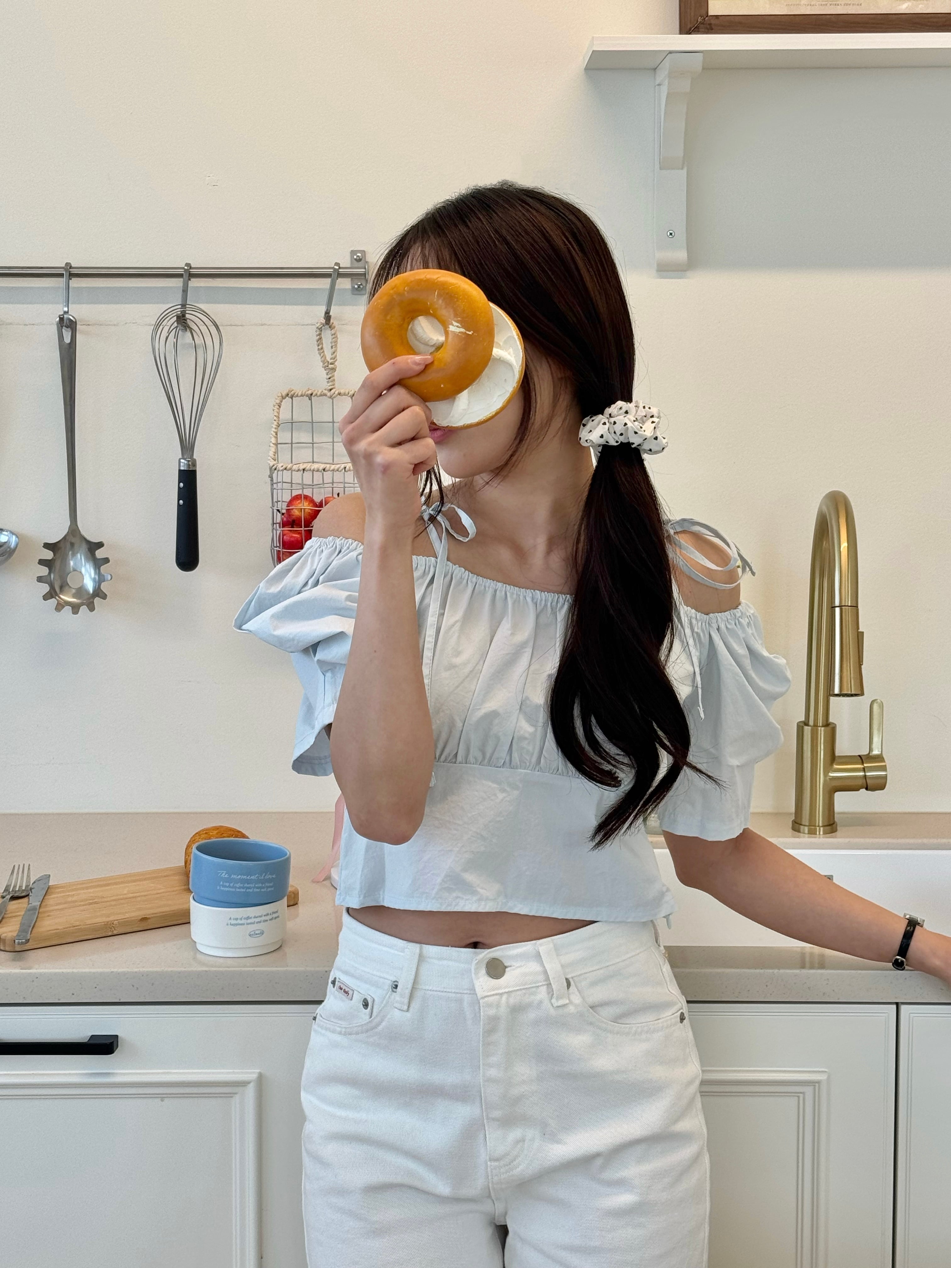 可愛らしいムードのブラウス。パフスリーブのボリューム感とクロップド丈で綺麗なシルエットに。脚長効果にも◎ショルダーストラップがアクセントになり、より一層ラブリー感アップ。サイドにファスナーが付いているので着脱が楽に行えます!