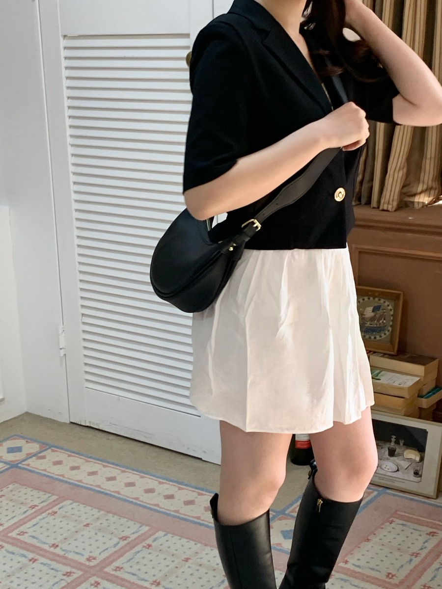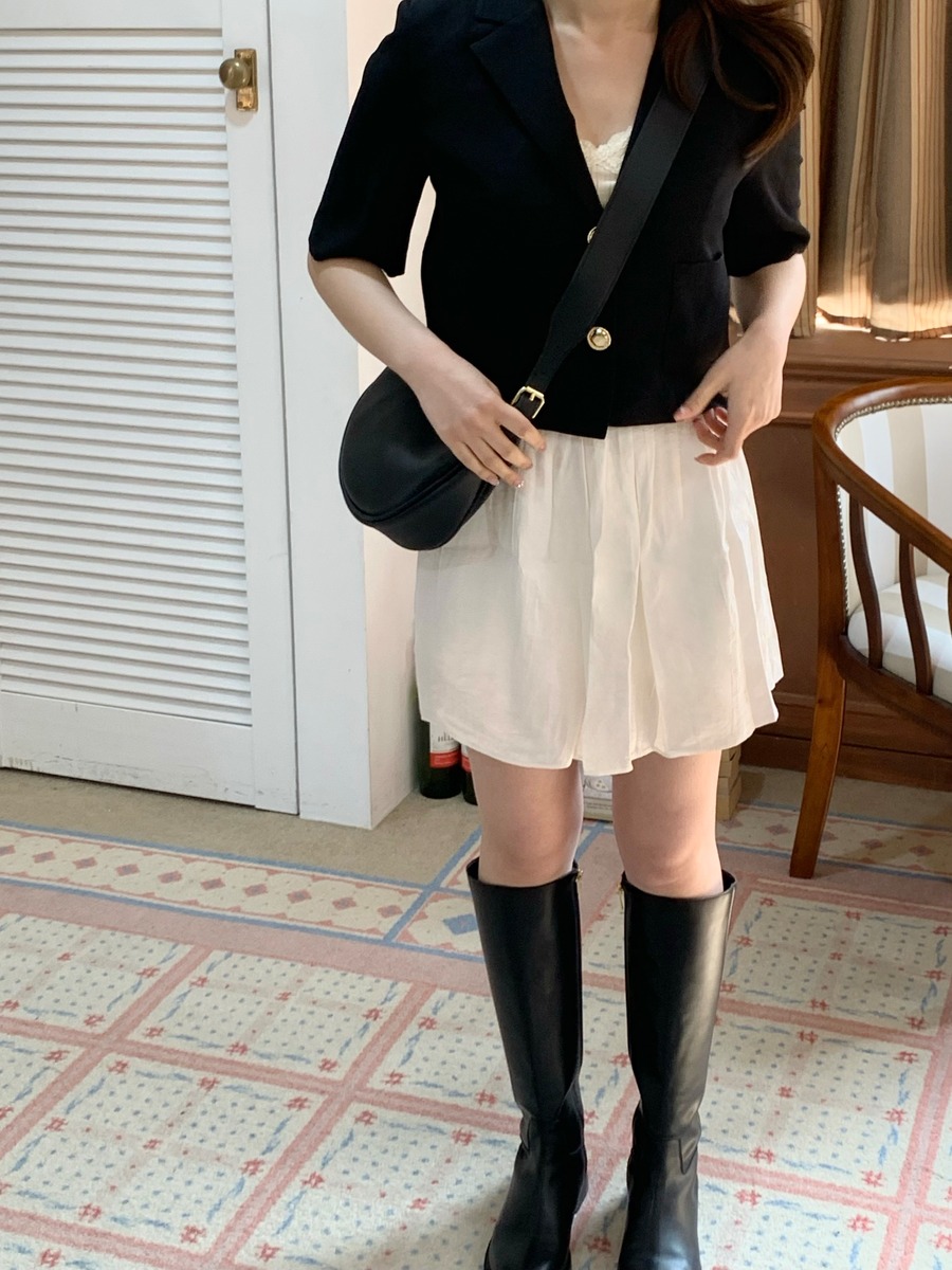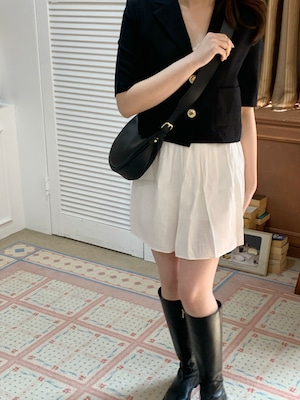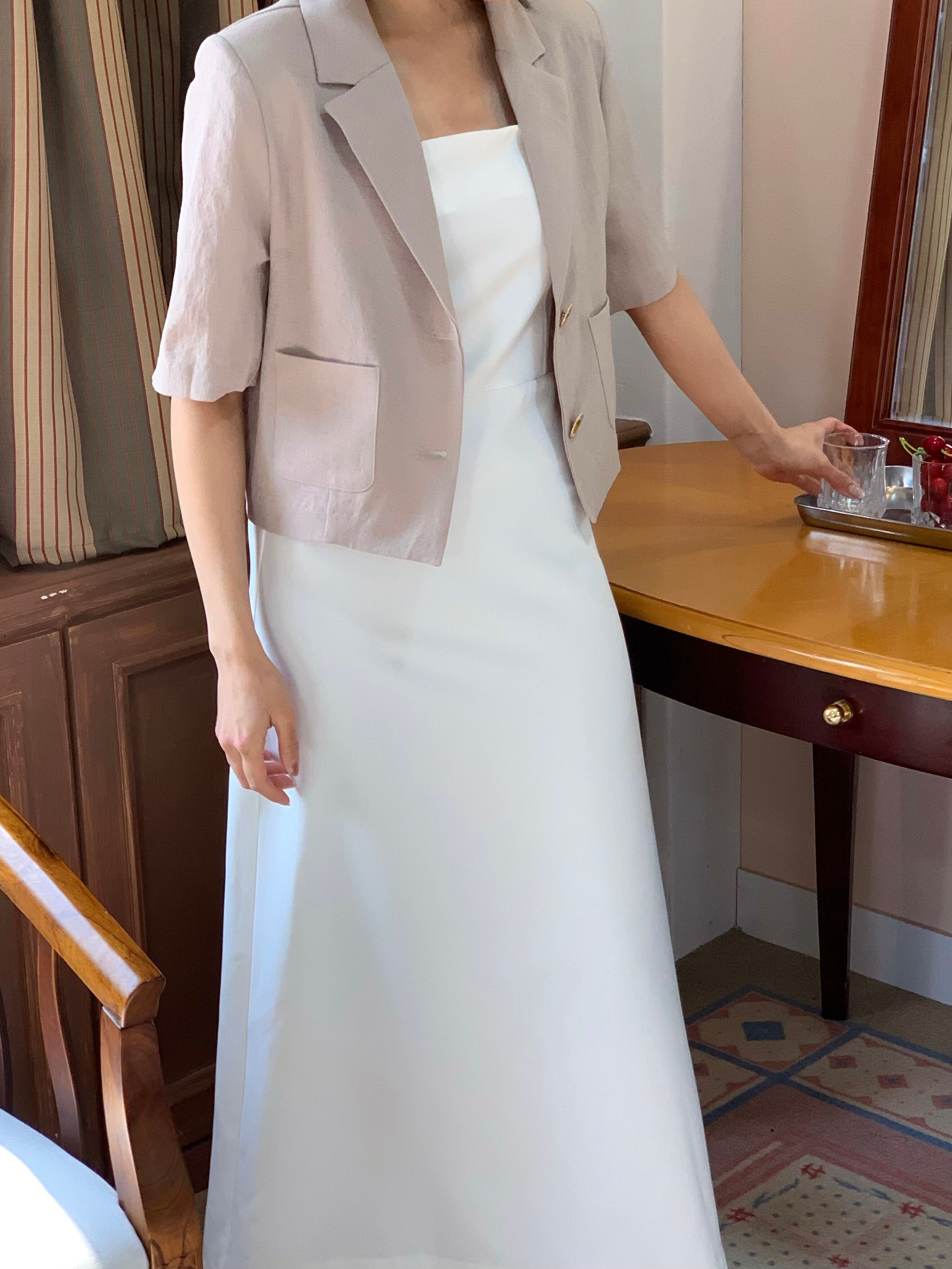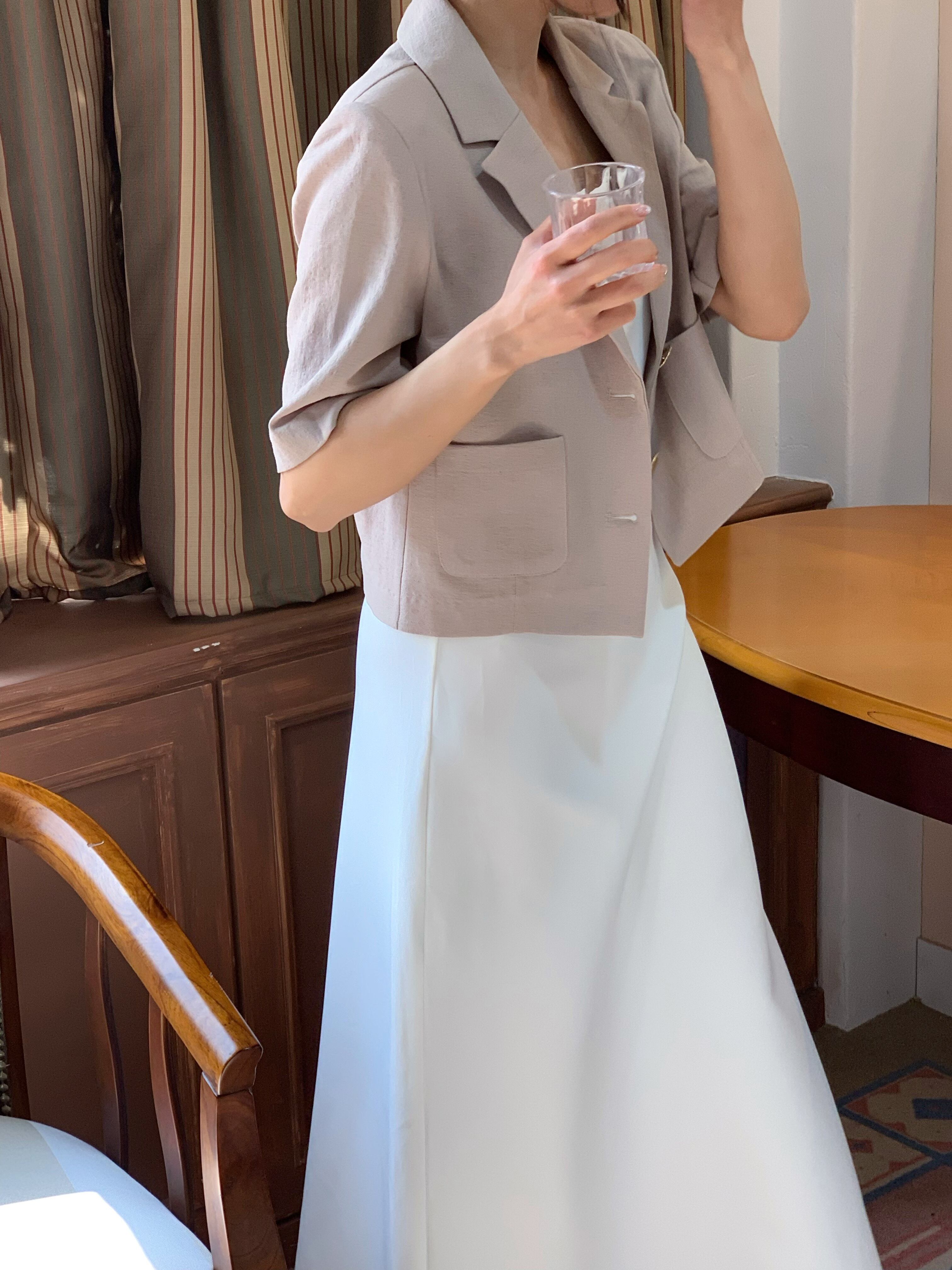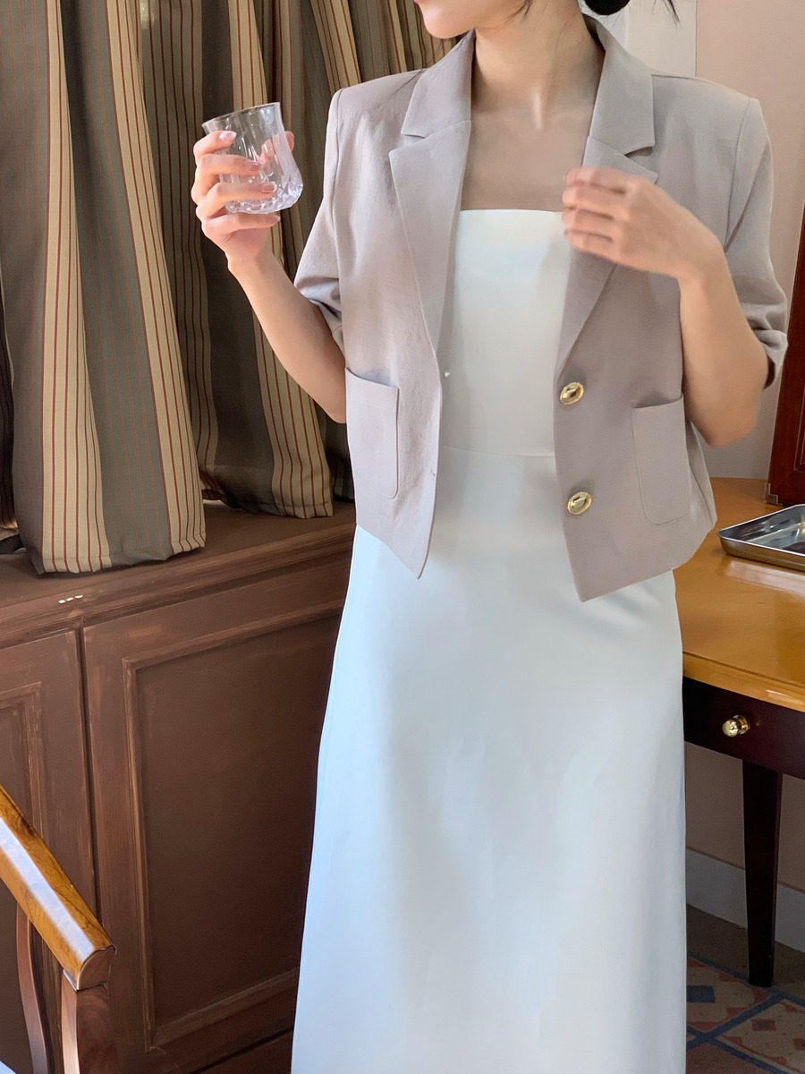 高級感あるボタンが魅力的なショートジャケット。肩パッド入りなので綺麗なシルエットで着用できます。ボタン開け閉めでの2Wayコーデやスカート、パンツスタイルで雰囲気を変えて楽しめることができます。ショート丈なのでスタイルアップにもなり軽量で涼しく着用できるサマーショートジャケットです。オフィスルックにも◎