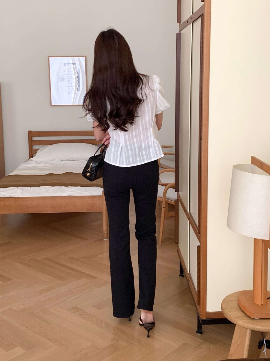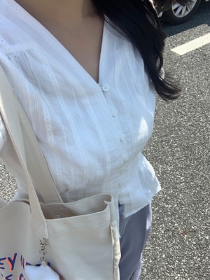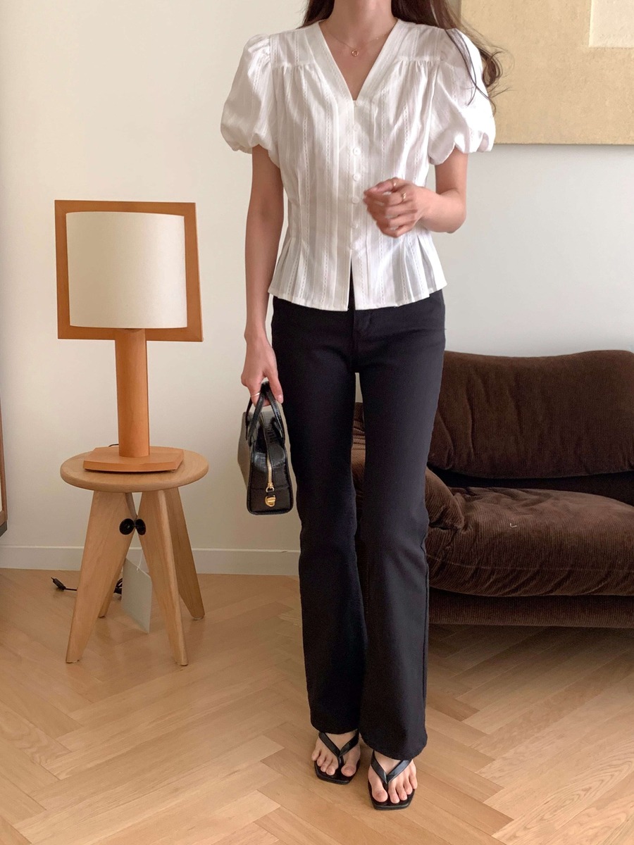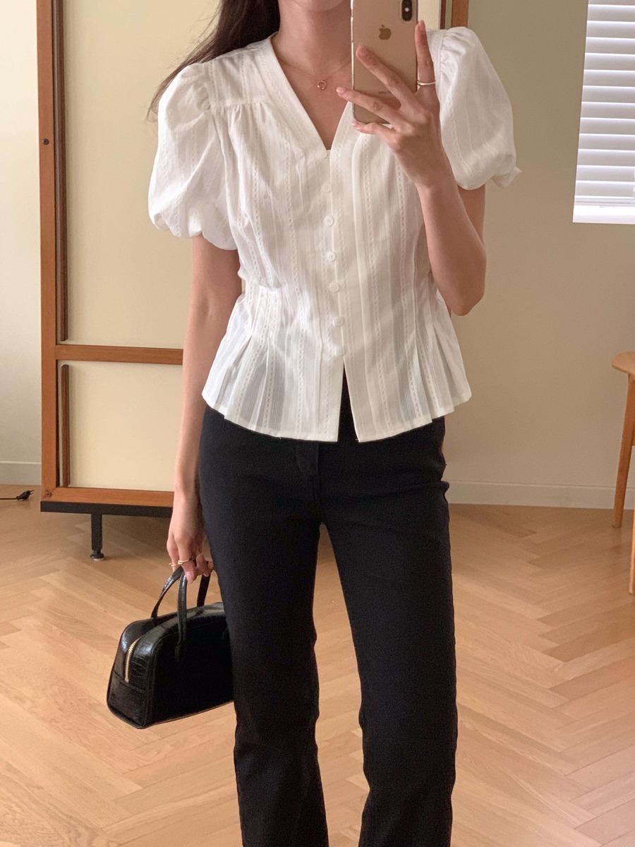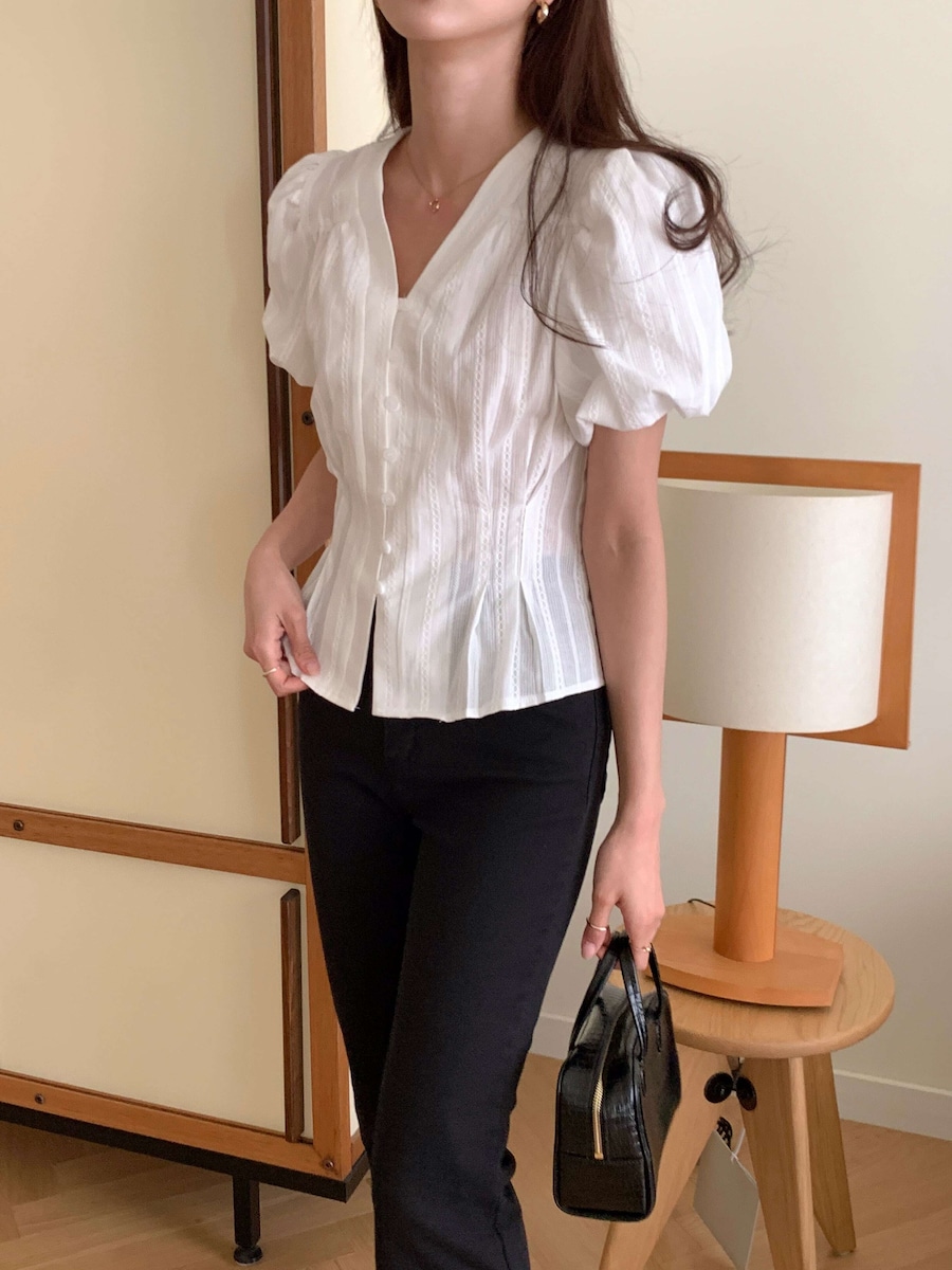 ディテールが可愛らしいレースブラウス。袖口にボリュームがありシルエットがとても可愛らしくコットン素材で肌触りも良いです。パフスリーブで顔回りもスッキリしウエスト部分がスリムに見えるシルエットで、綺麗に見えるラインが女性らしい雰囲気を演出してくれます。デニムやスラックスなどボトムスも合わせやすいです。裏地がないのでivoryであればスキントーン、ブラックであれば同系色のインナーと合わせて頂ければ透け感を気にすることなく着用できます!
