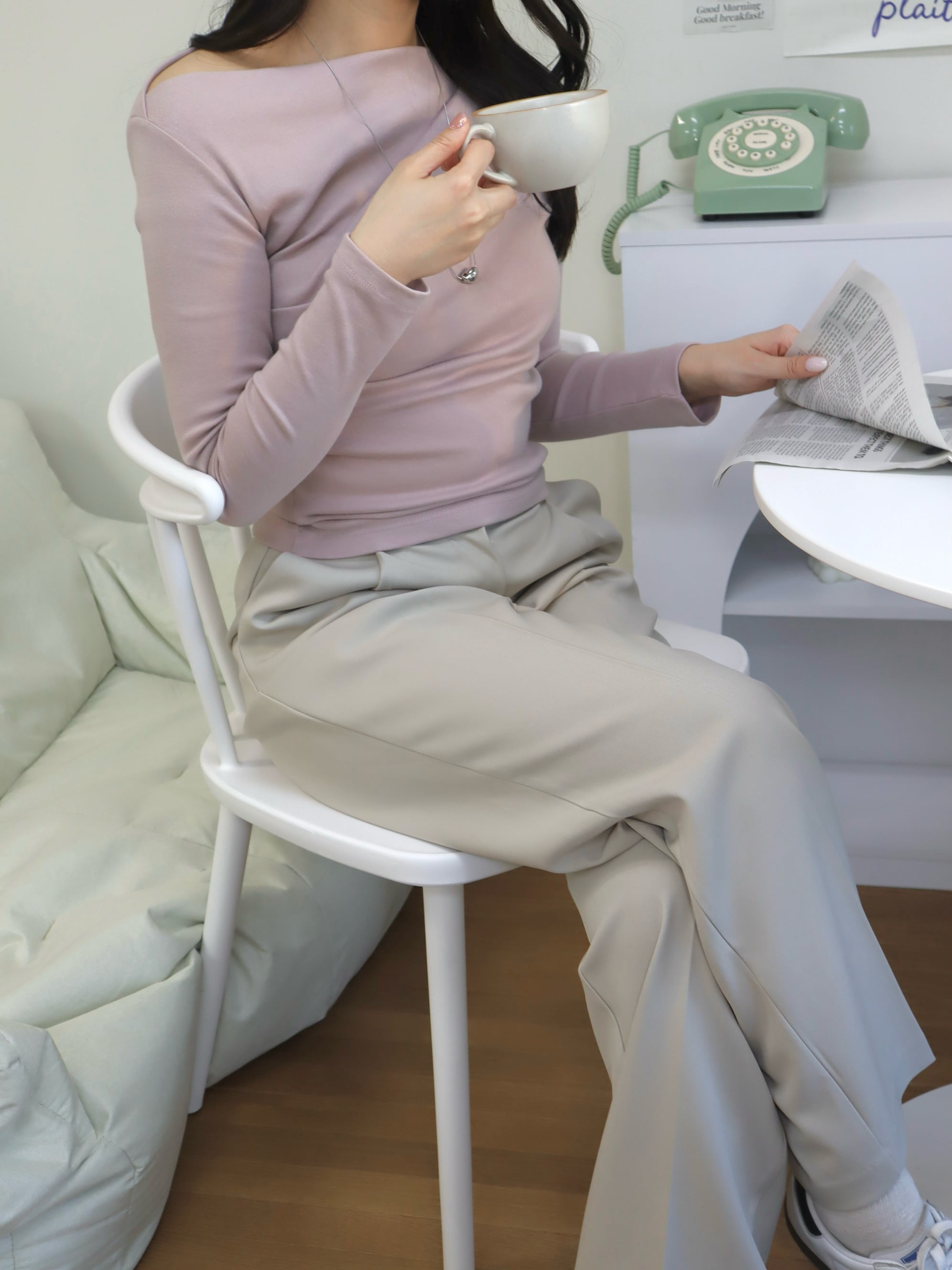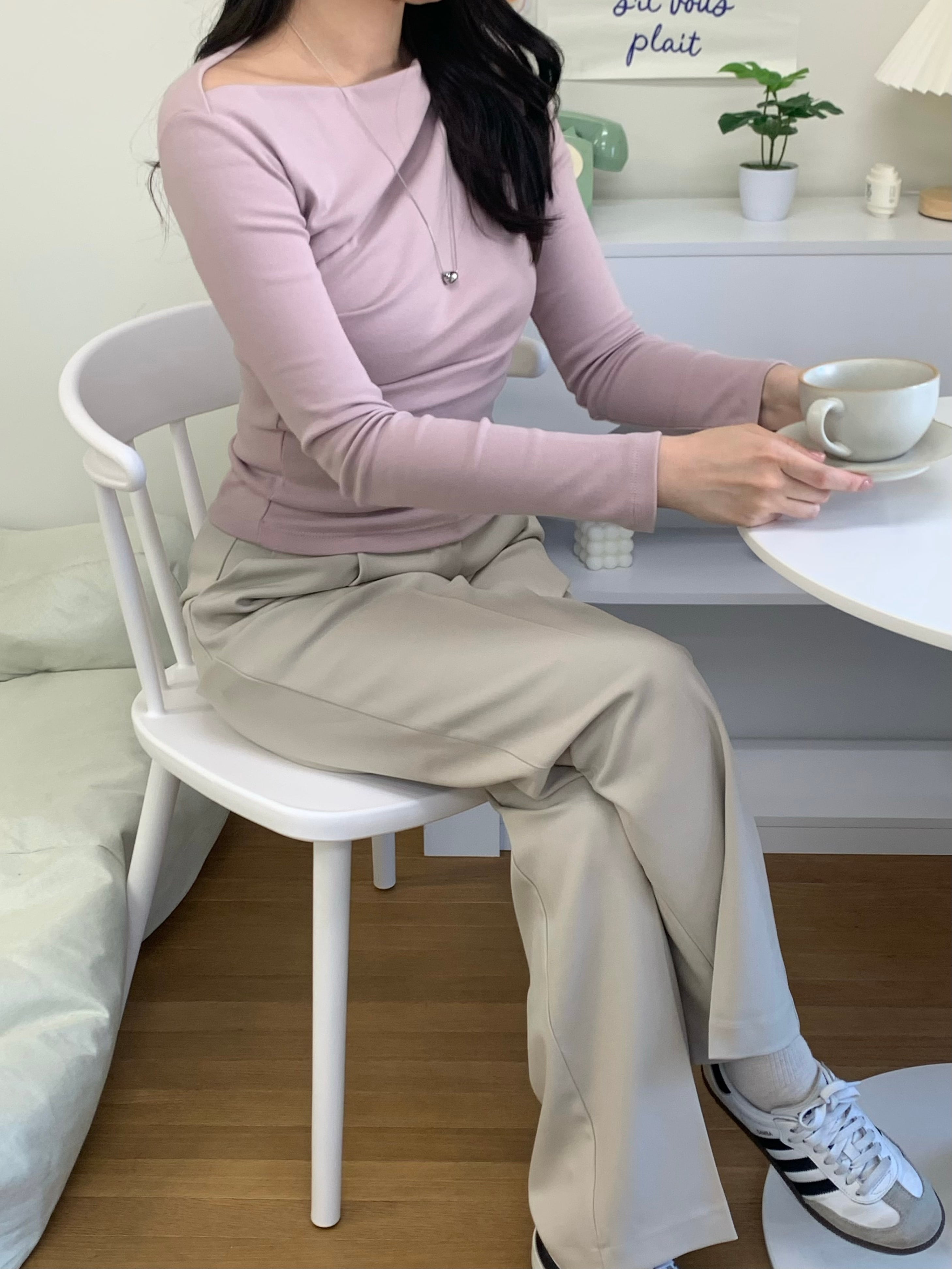 スリムフィットで素肌に負担なく着心地も良く、大人の抜け感コーデにぴったり。